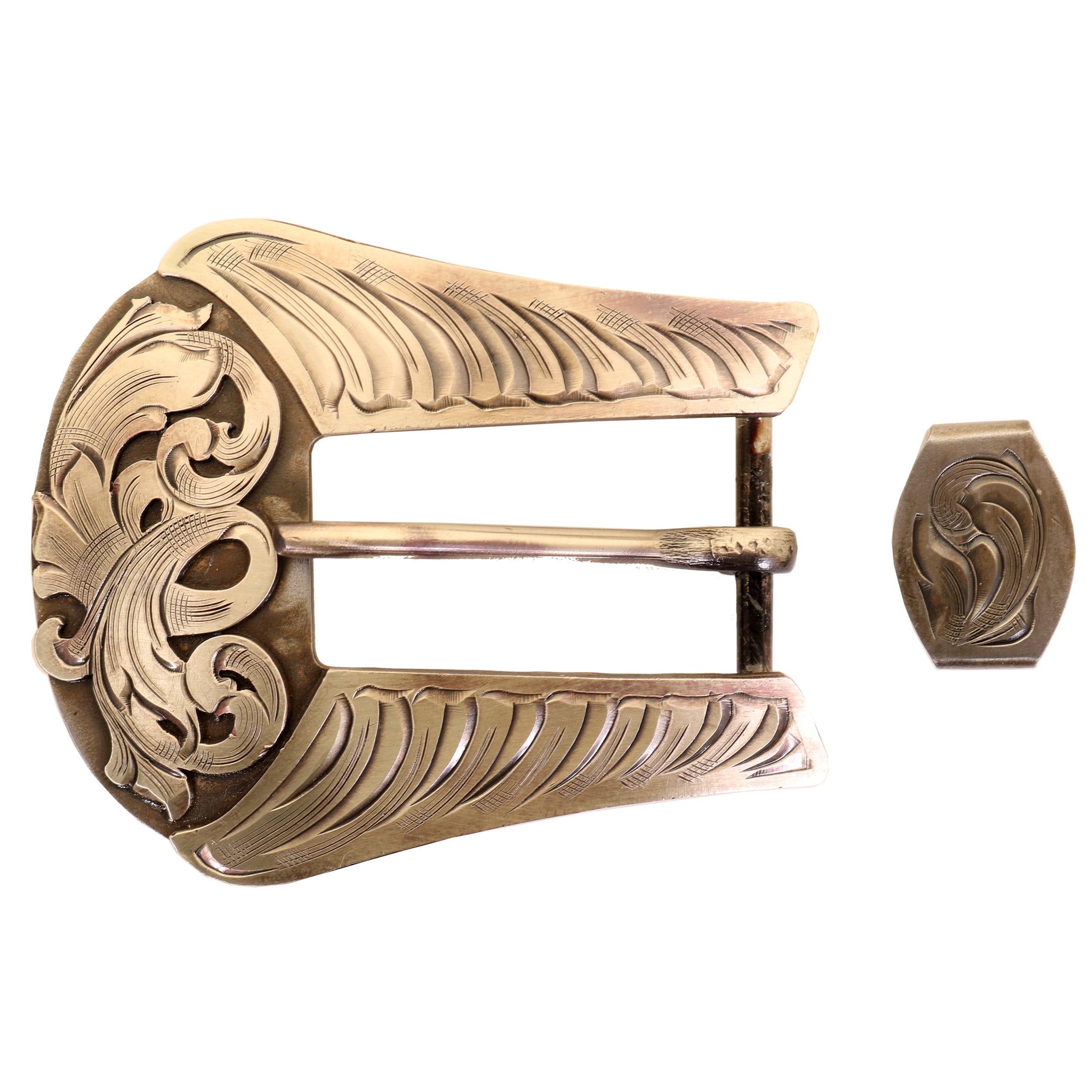 3/4" Antique Silver Hand-Engraved Floral Overlay Buckle Set