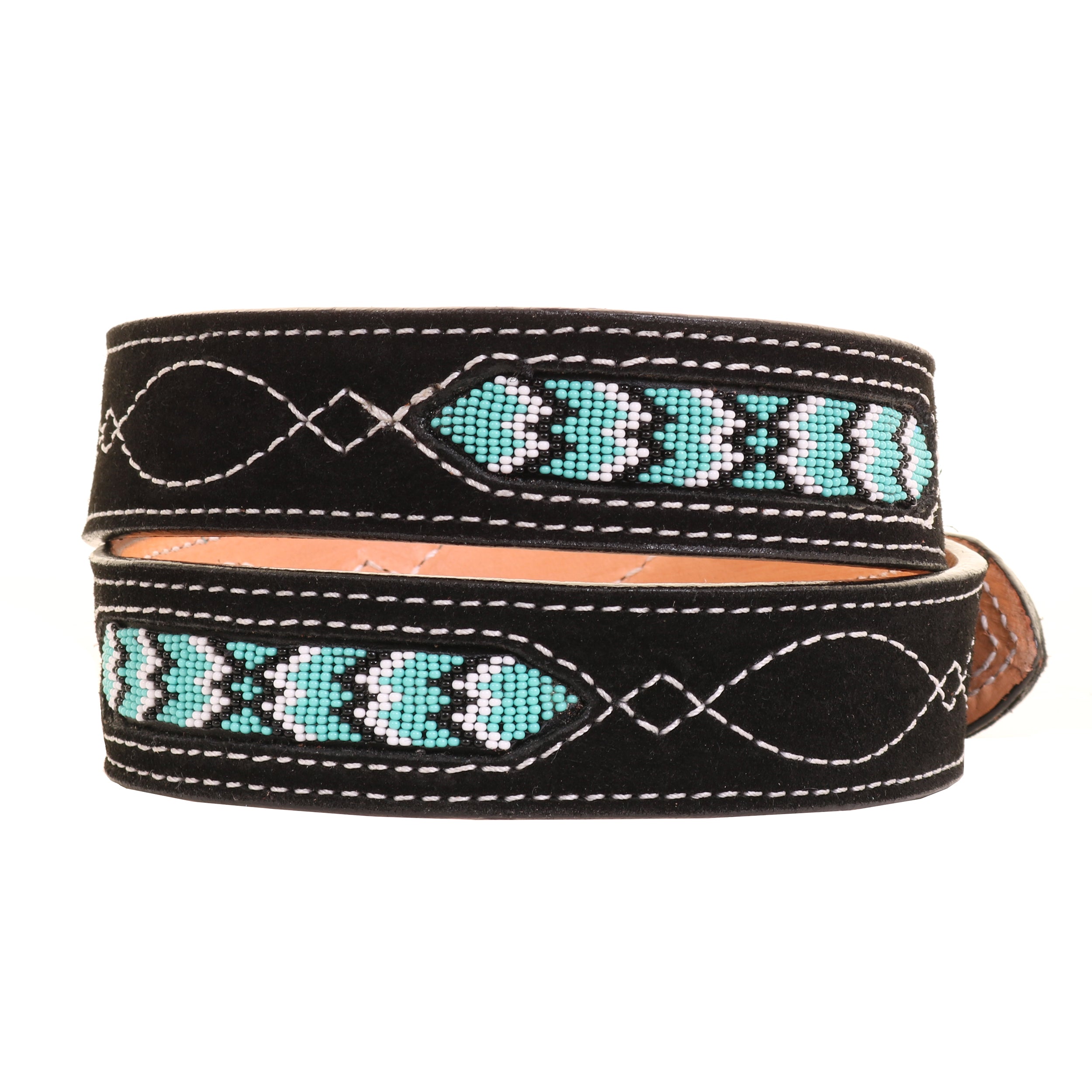 Make a statement without saying a word. This black suede belt features classic gunslinger stitching paired with bold turquoise beaded accents. Crafted from soft, premium suede, the belt adds texture and depth while the intricate stitching brings character. This belt is designed for those who appreciate craftsmanship with attitude.