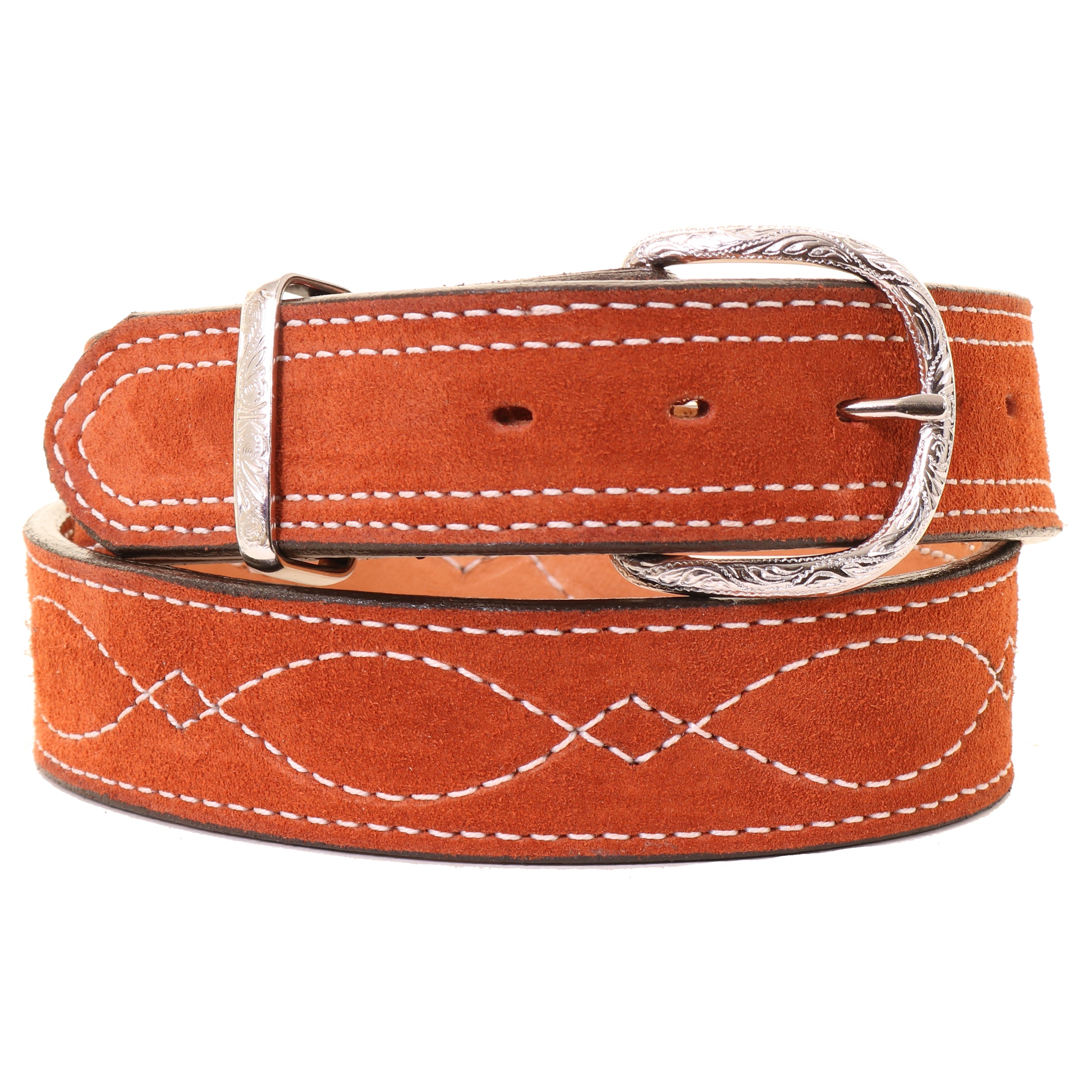 This rust suede belt features classic white gunslinger stitching. Crafted from soft, premium suede, the belt adds texture and depth while the intricate stitching brings character.