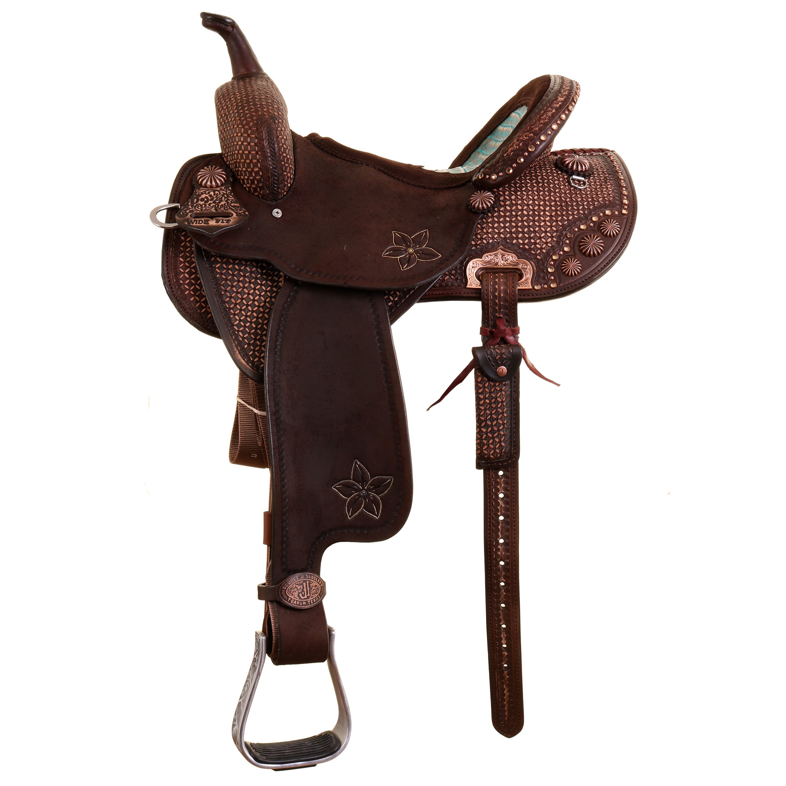 Seat Jockey: Brown Roughout with Border Tool and Single Pozzi Flower with Gold Hi-Lites
