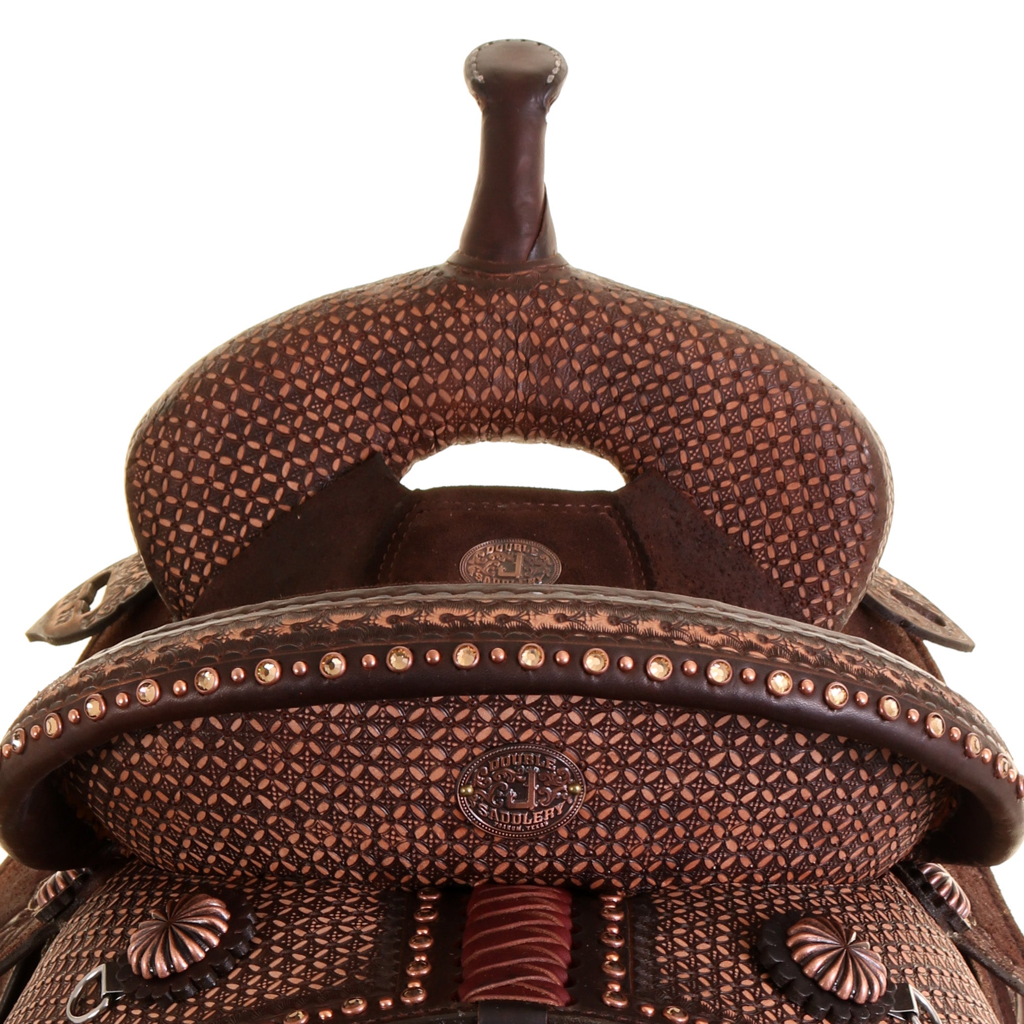 Cantle: Tooled with Alternating Light Colorado Topaz Swarovski Crystals and Small Copper Dots on Border