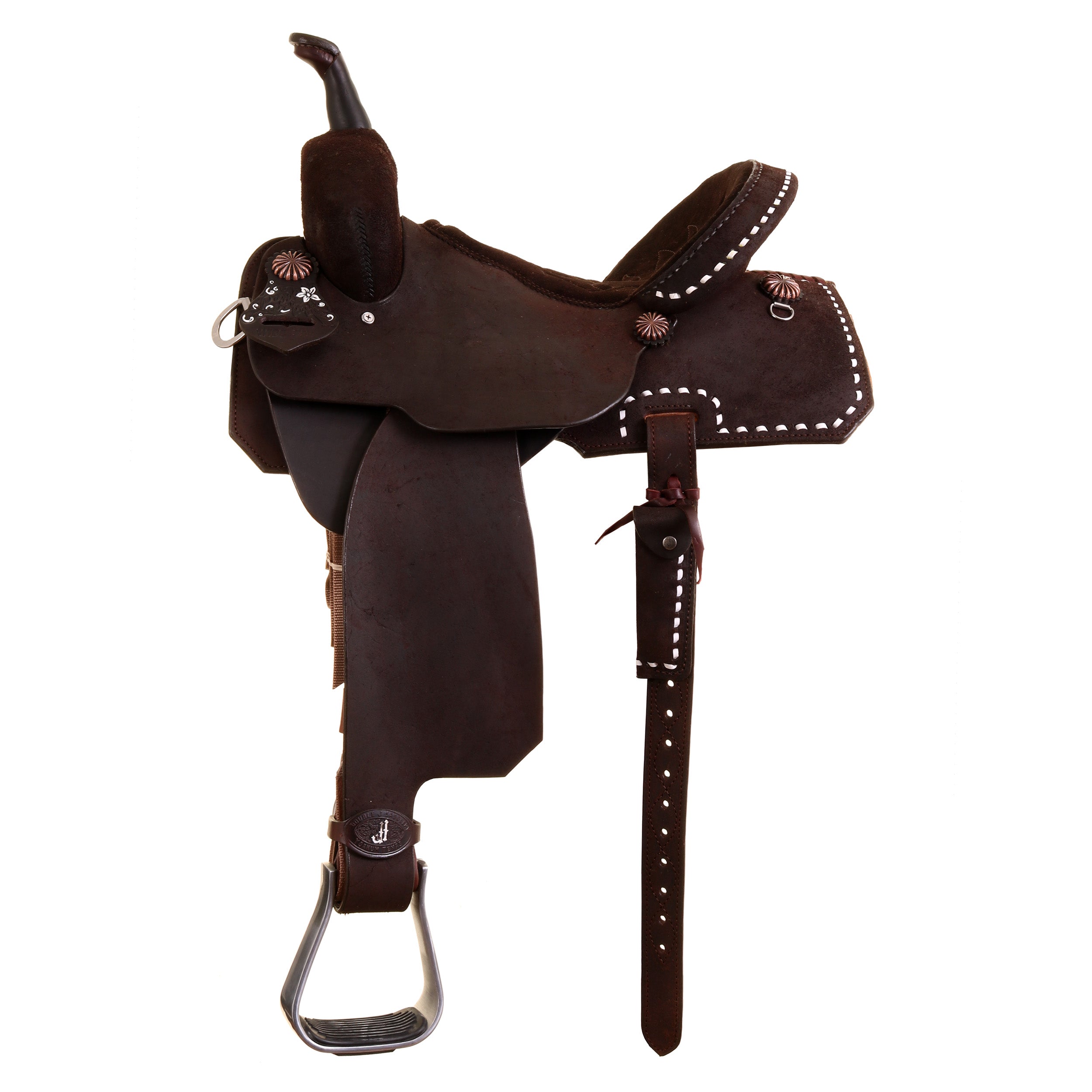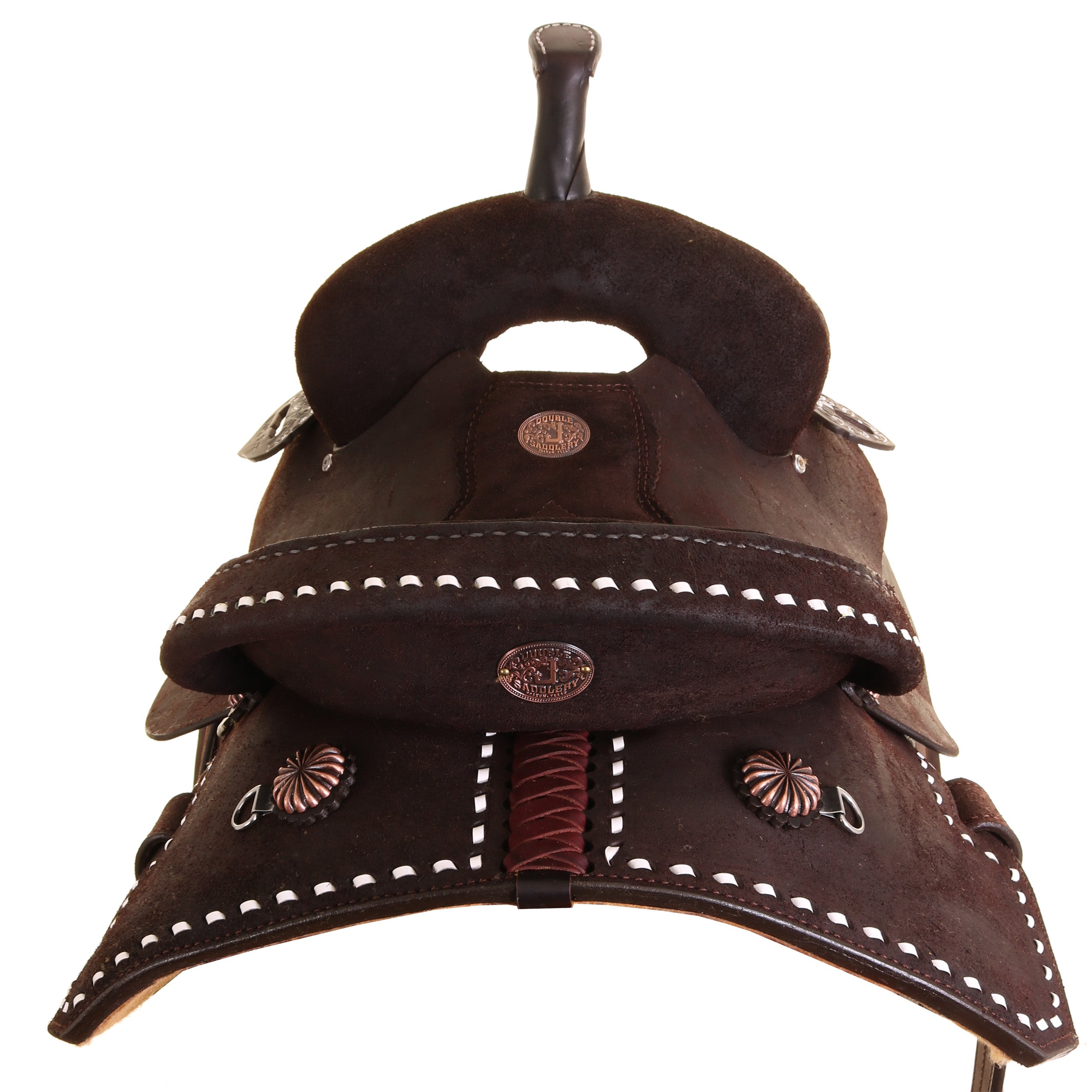 Cantle: Brown Roughout and White Buckstitch