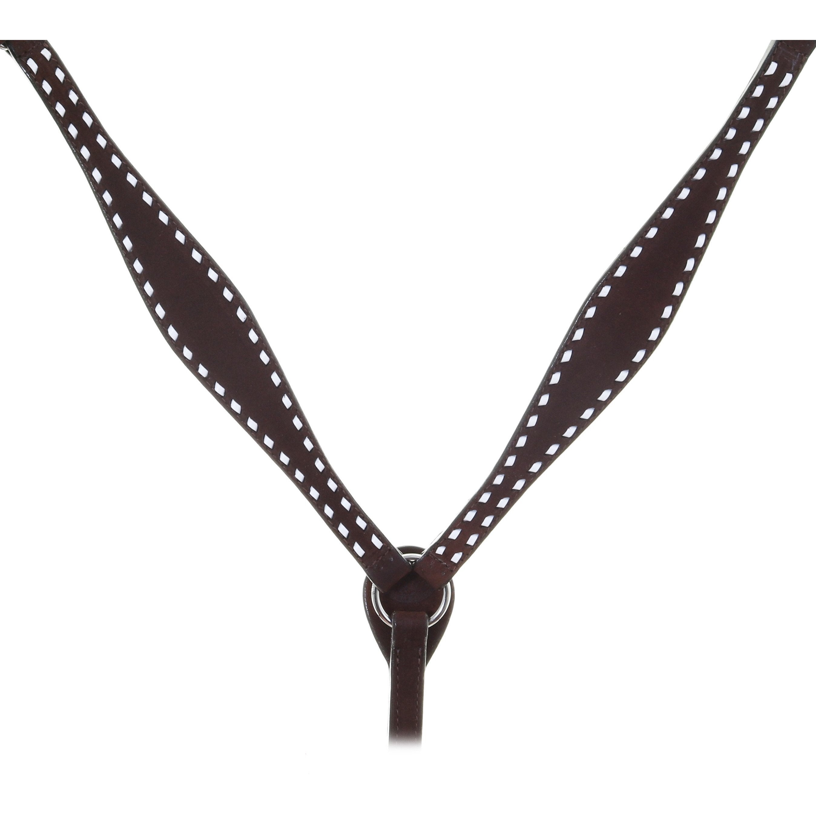 Breast collar in brown rough out with brown stitching and white buck stitch.
