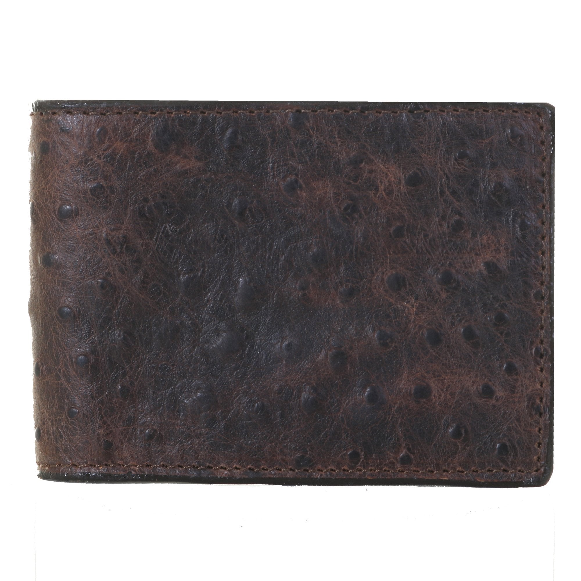 BF59 - Chocolate Brown Ostrich Print Bifold Wallet