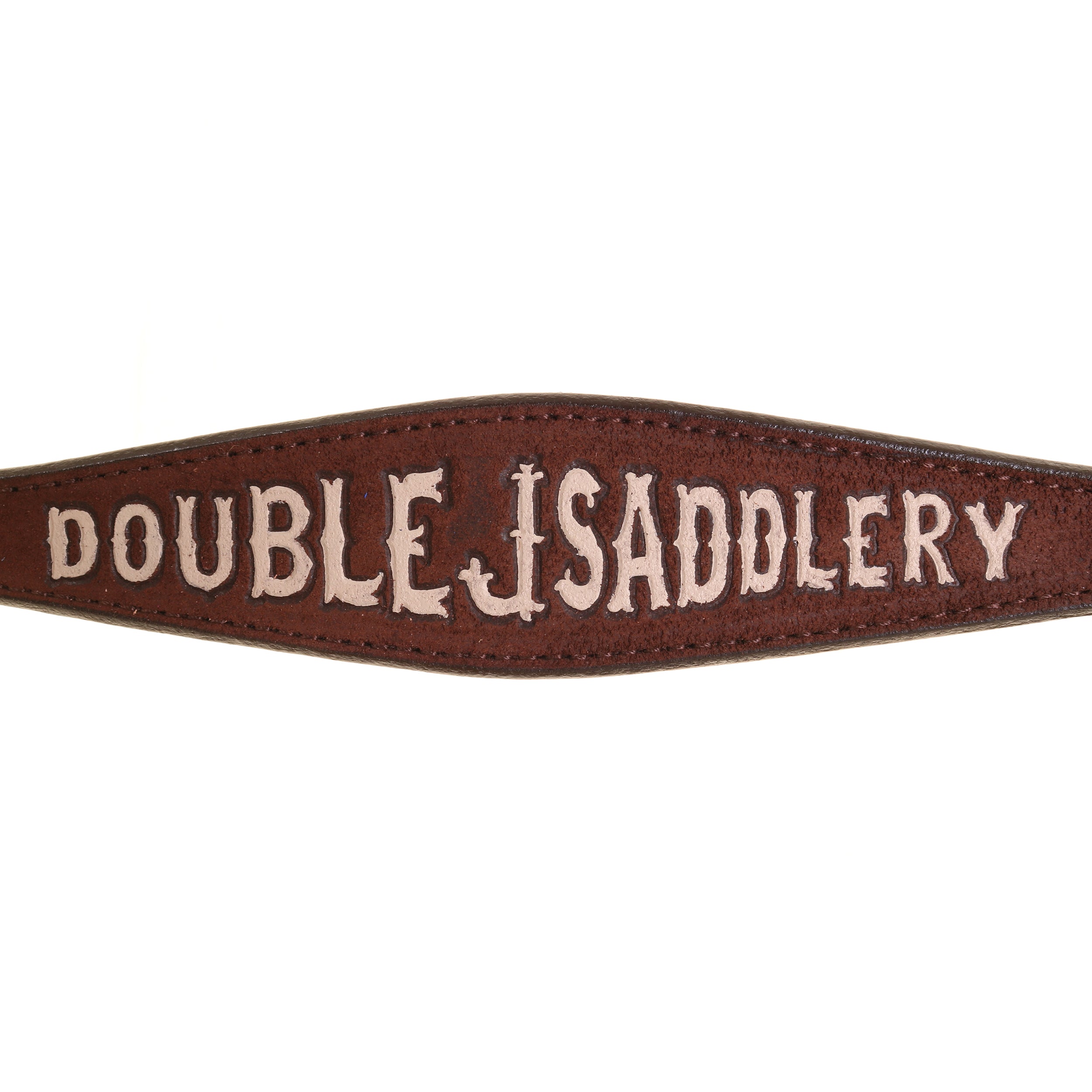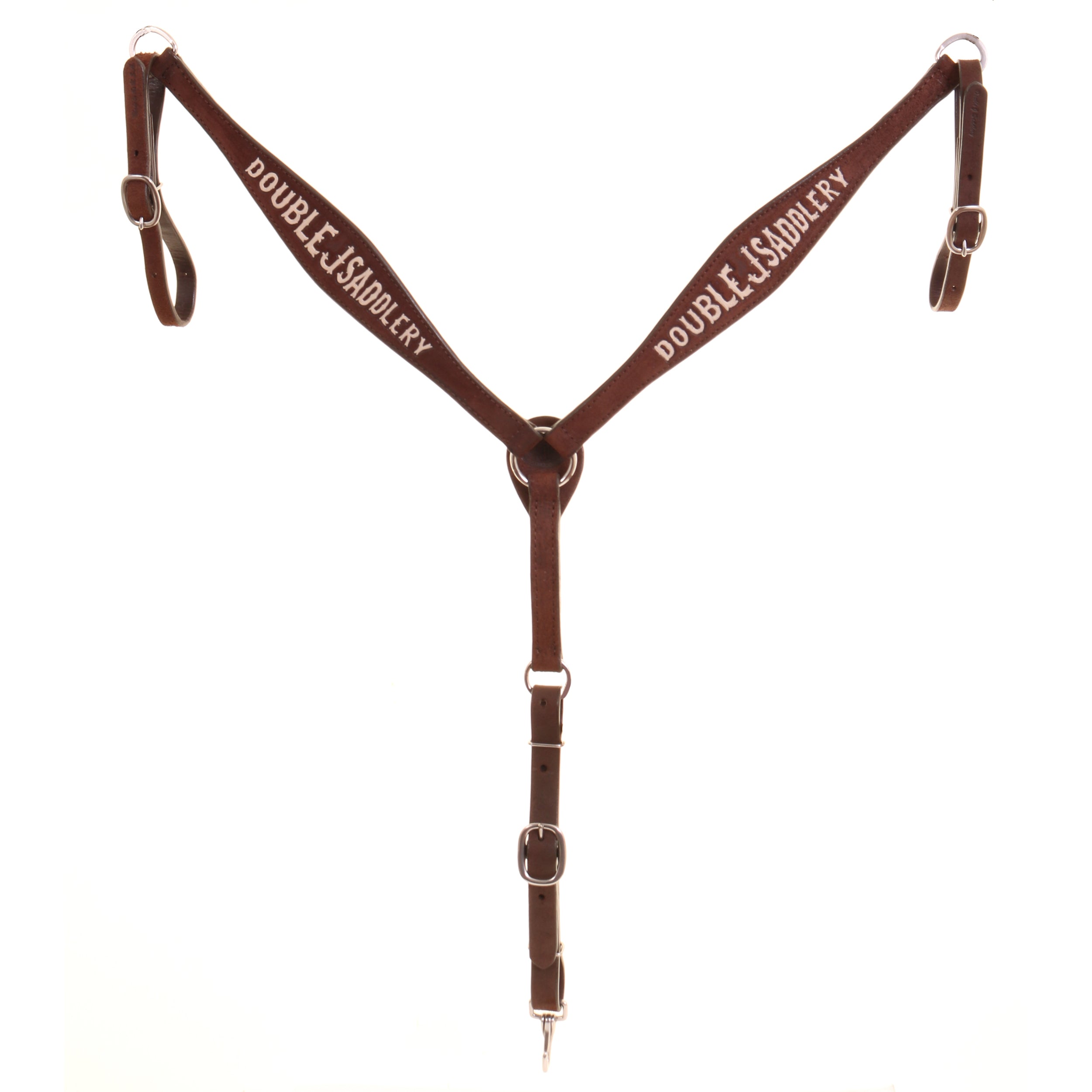 Brown roughout leather breast collar with Double J Saddlery painted cream.