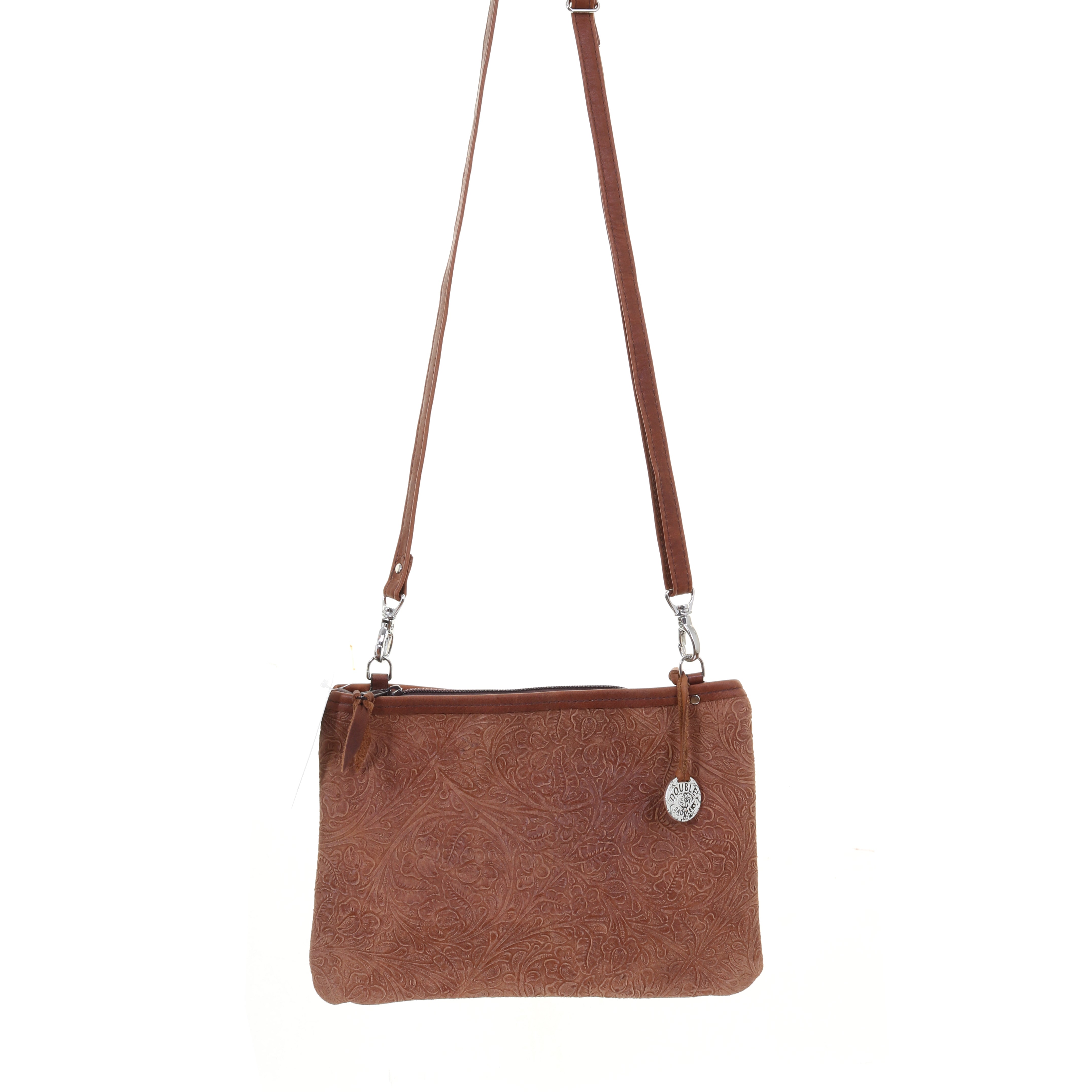 Sotto Western Tool Cognac Medium Clutch - Brandy Pull Up Trim and Long Adjustable Strap