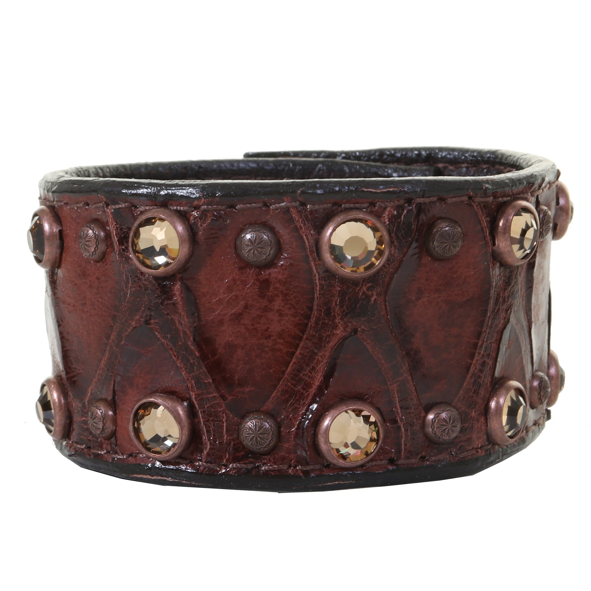 1 1/2" rust snake genuine cuff with alternating ACS16 & N18S dots along the edge