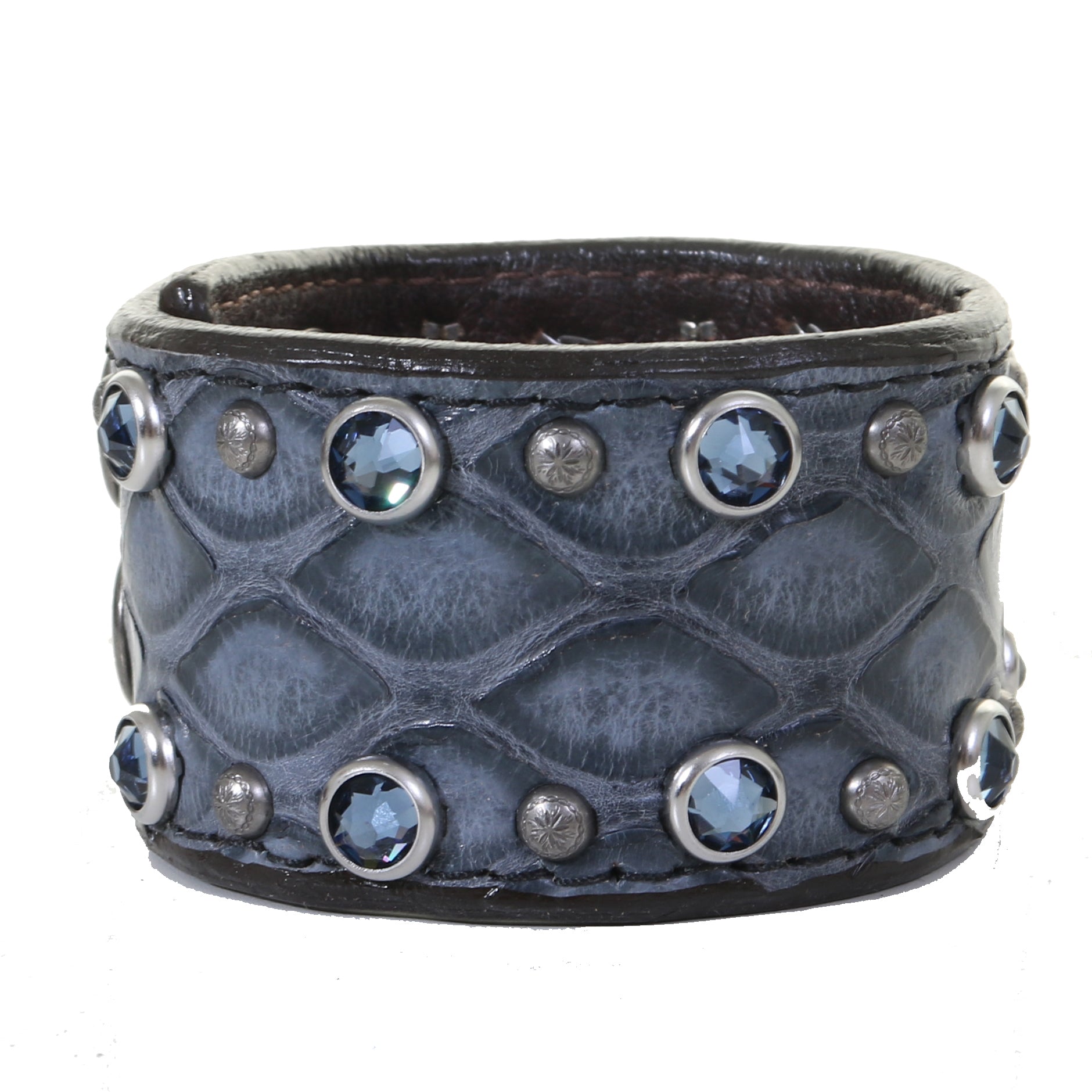 1 1/2" cuff in genuine dark grey anaconda leather with alternating CS25 & N16S dots along the edge