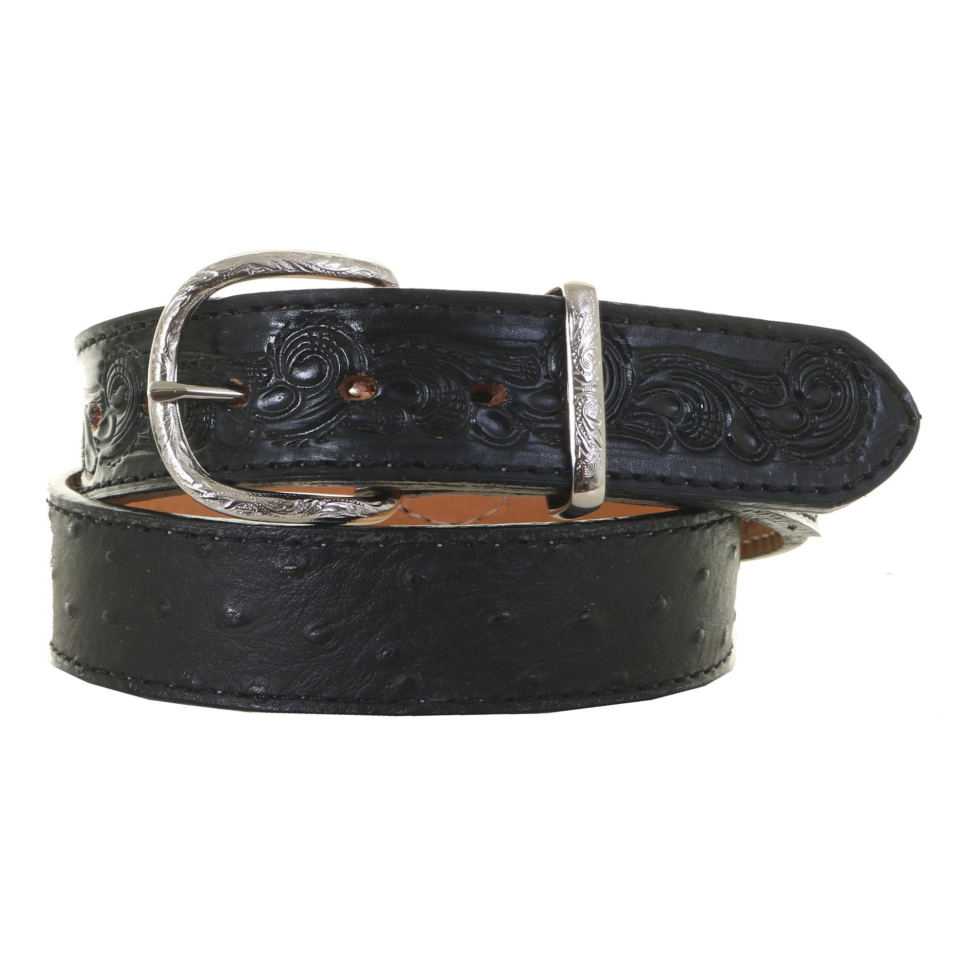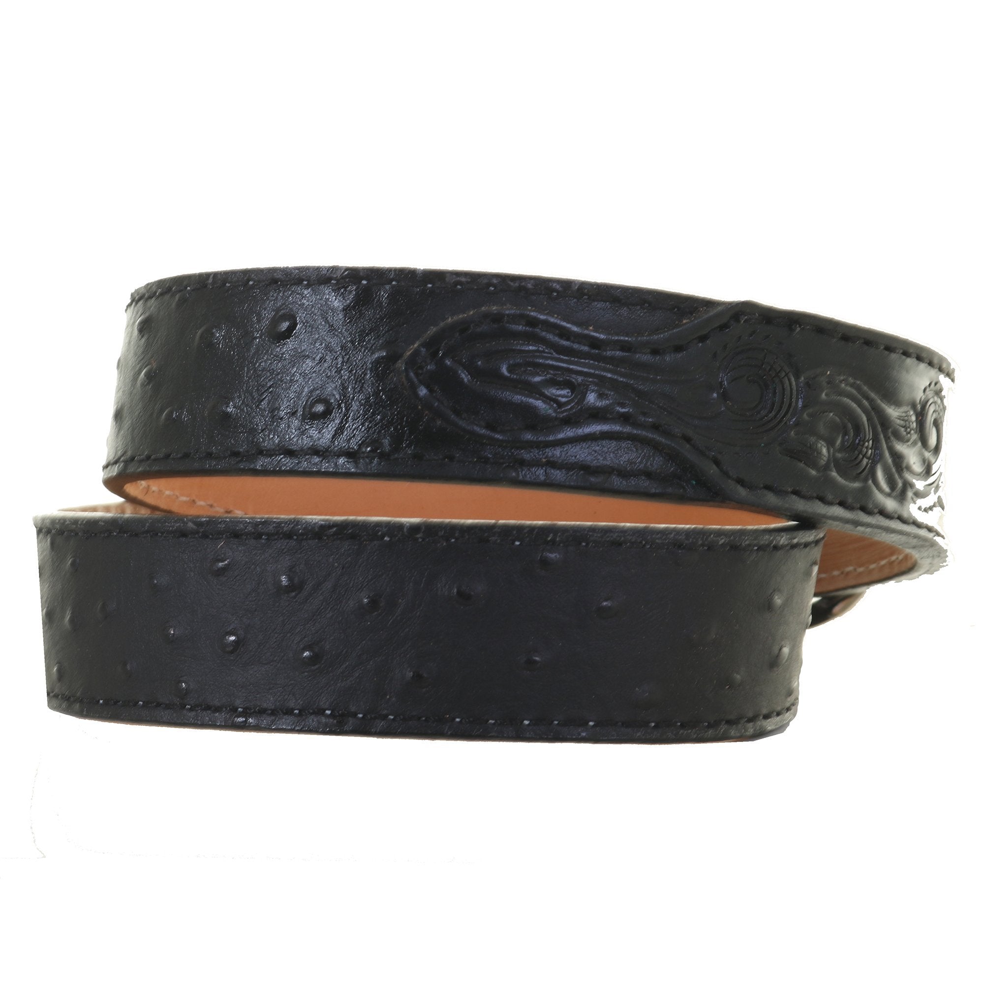 B1118 - Black Vintage Ostrich and Tooled Leather Belt