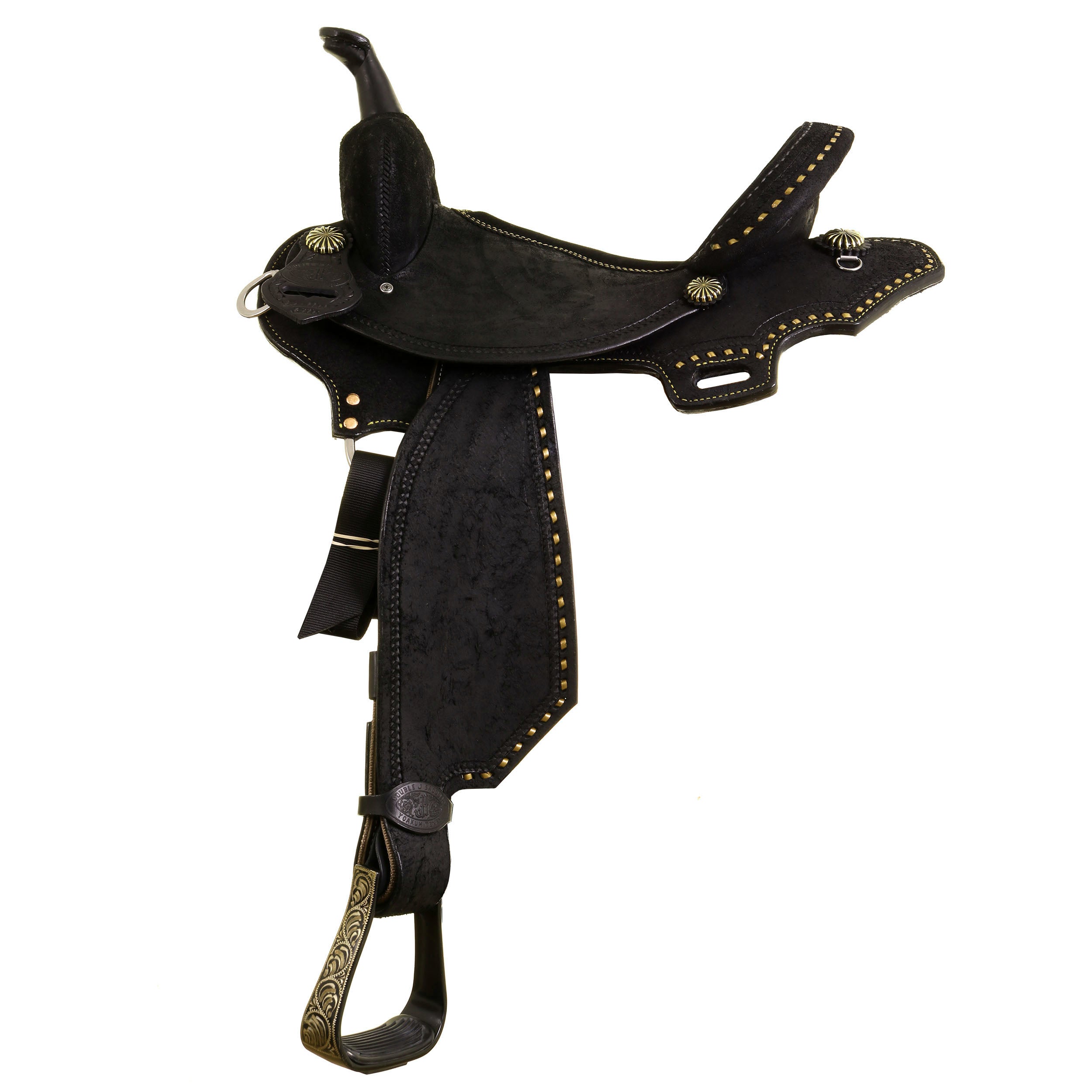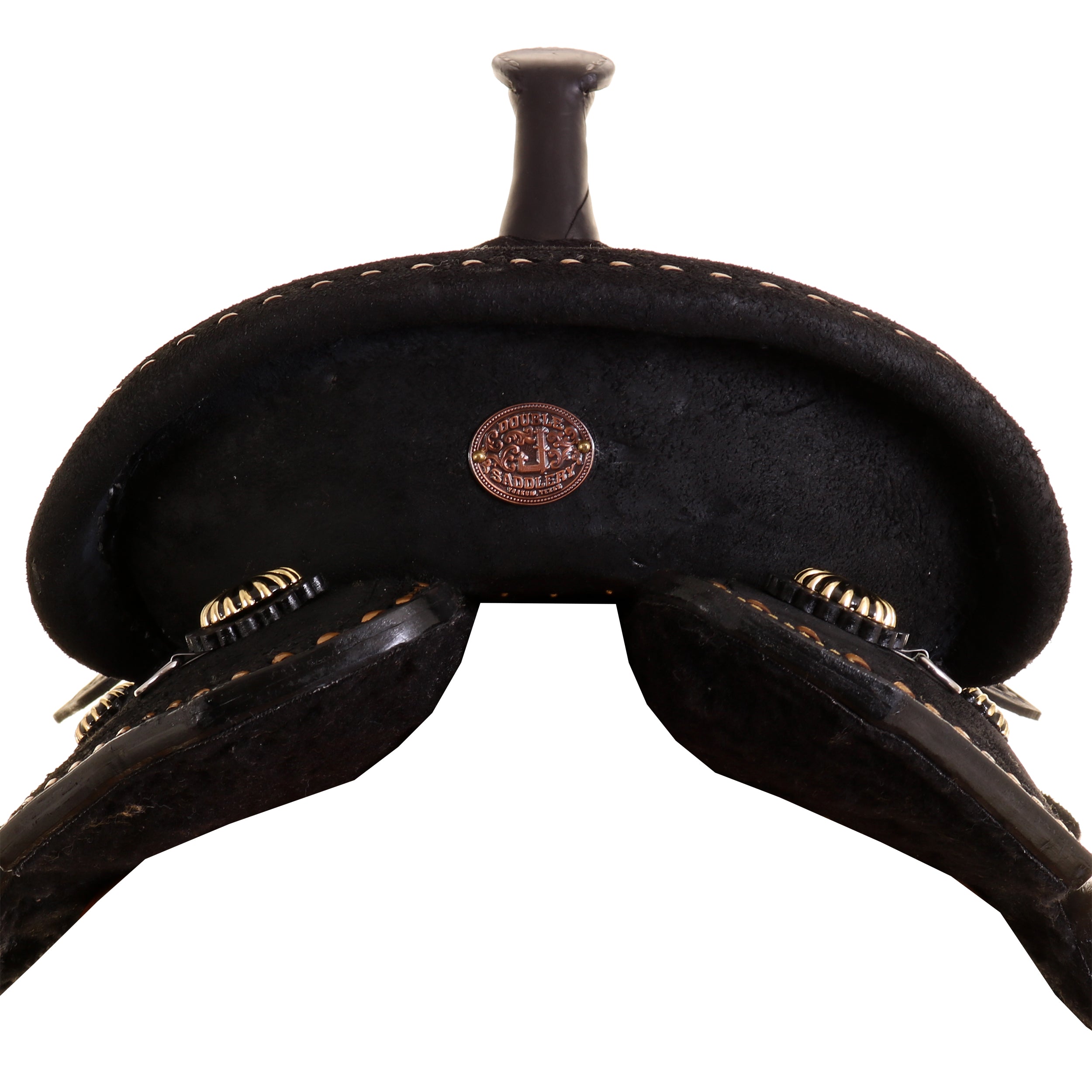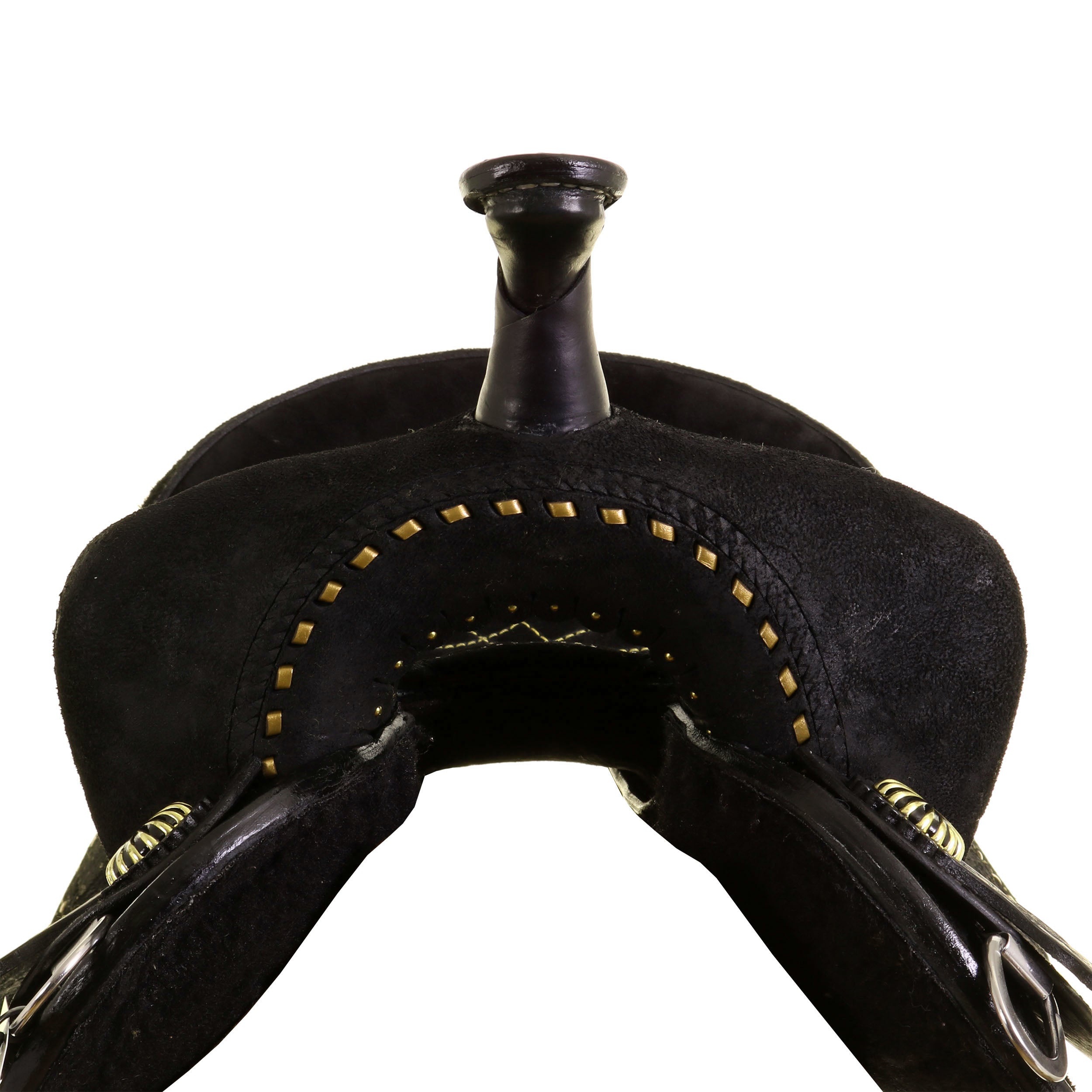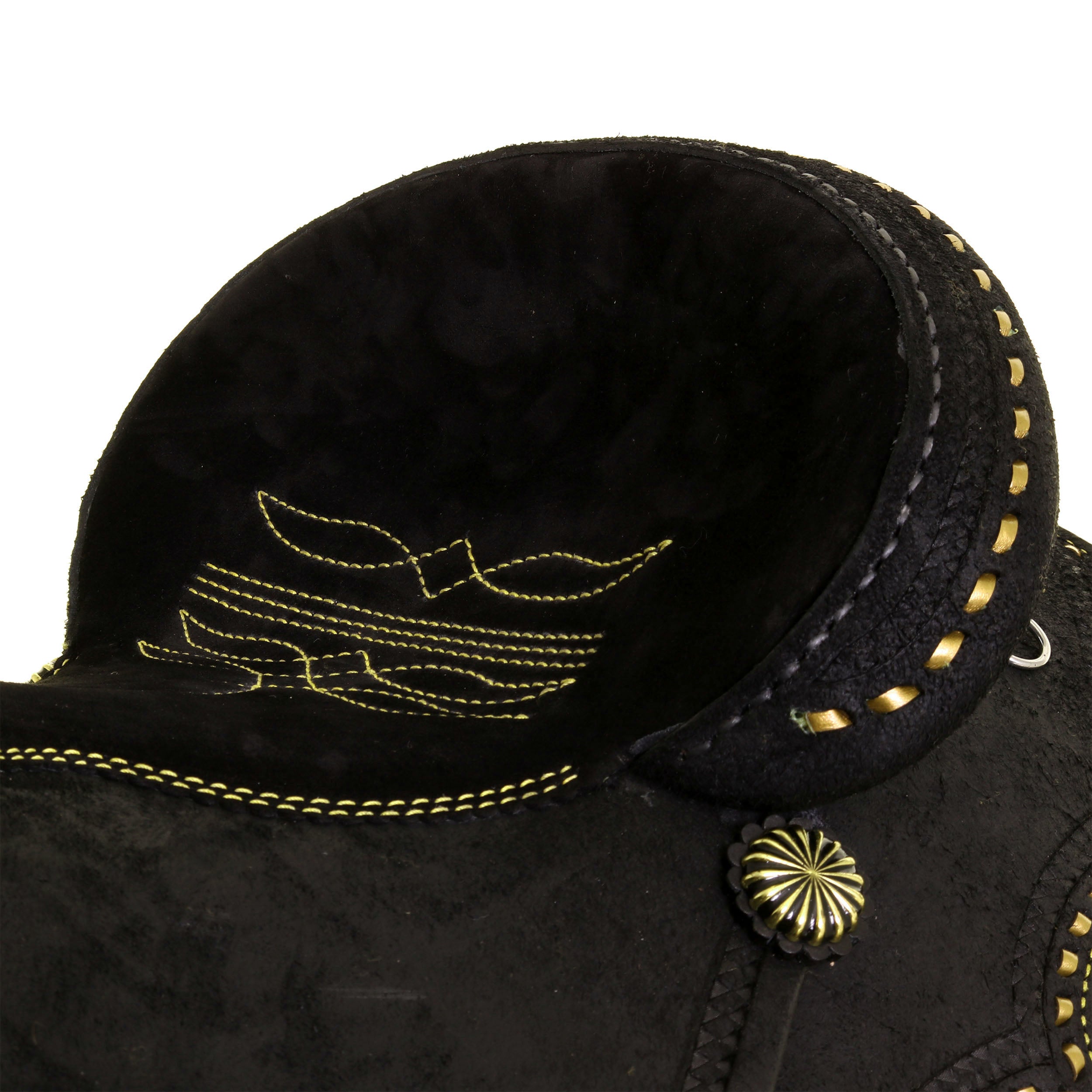 Cantle: Black Roughout - Cheyenne Roll - Tooled with Buckstitch - Black Roughout Back