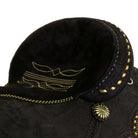 Seat & Color: Black Suede - Bicycle - Boot Stitch in Gold Thread