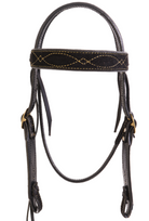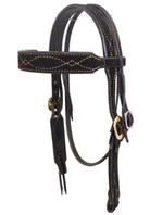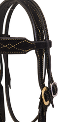 Premium black suede leather Headstall lined in brown leather, stitched in Gold thread with our classic Gunslinger pattern!