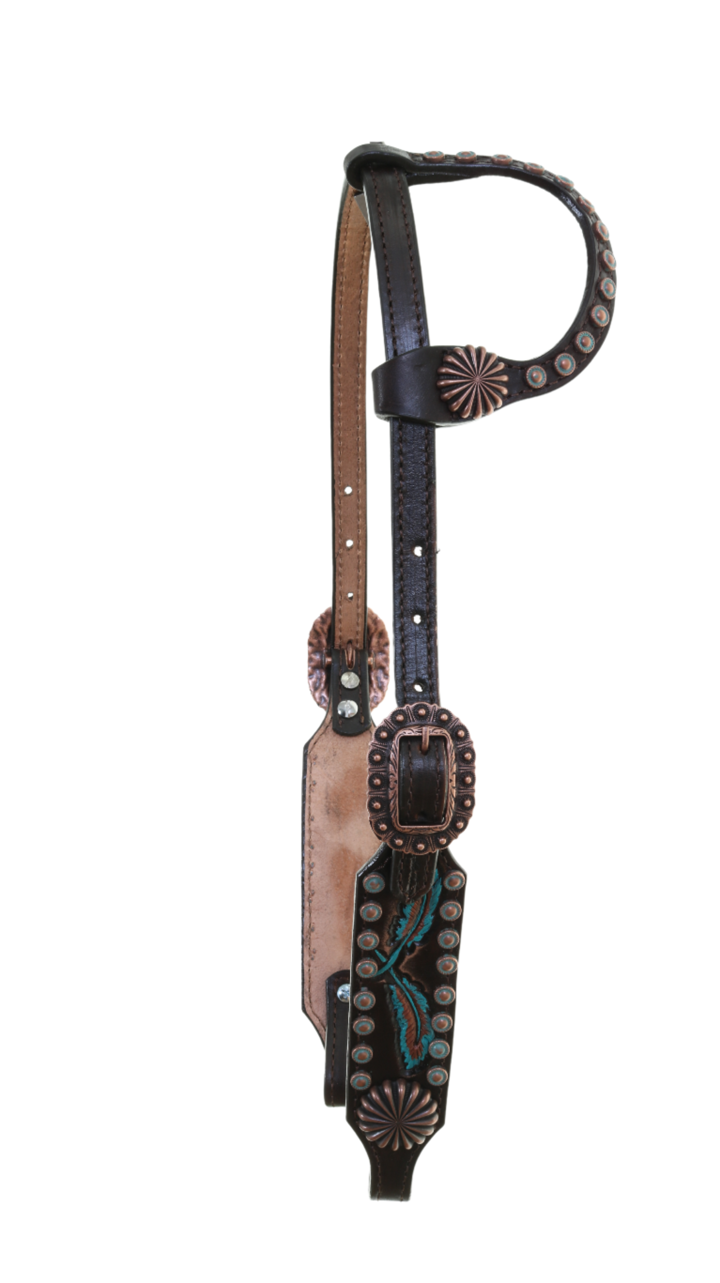 Headstalls are available with either a regular cheek or a gag cheek depending on the bit you use. Regular headstalls, brow band or single ear, measure about 42" from bit end to bit end. Regular cheek lengths are about 8". Gag style headstalls will be about 2" shorter on each cheek piece, 4" overall. Crown piece is usually 28" long, with 5 holes approximately 1" apart on each side for lots of adjustment. Throat latch is about 38" long. Brow bands are around 16 1/2" long. Customization of lengths are available, just give us a call.