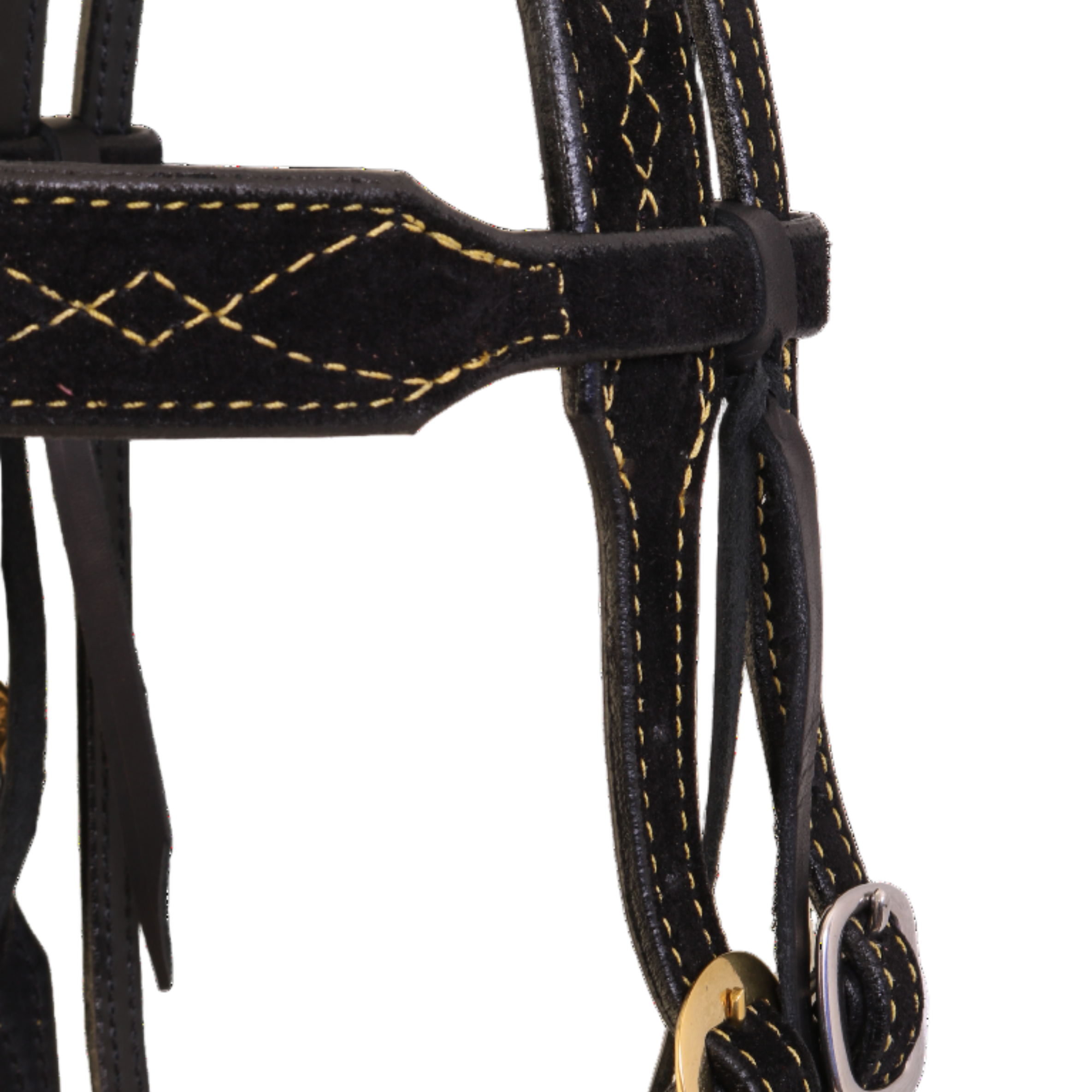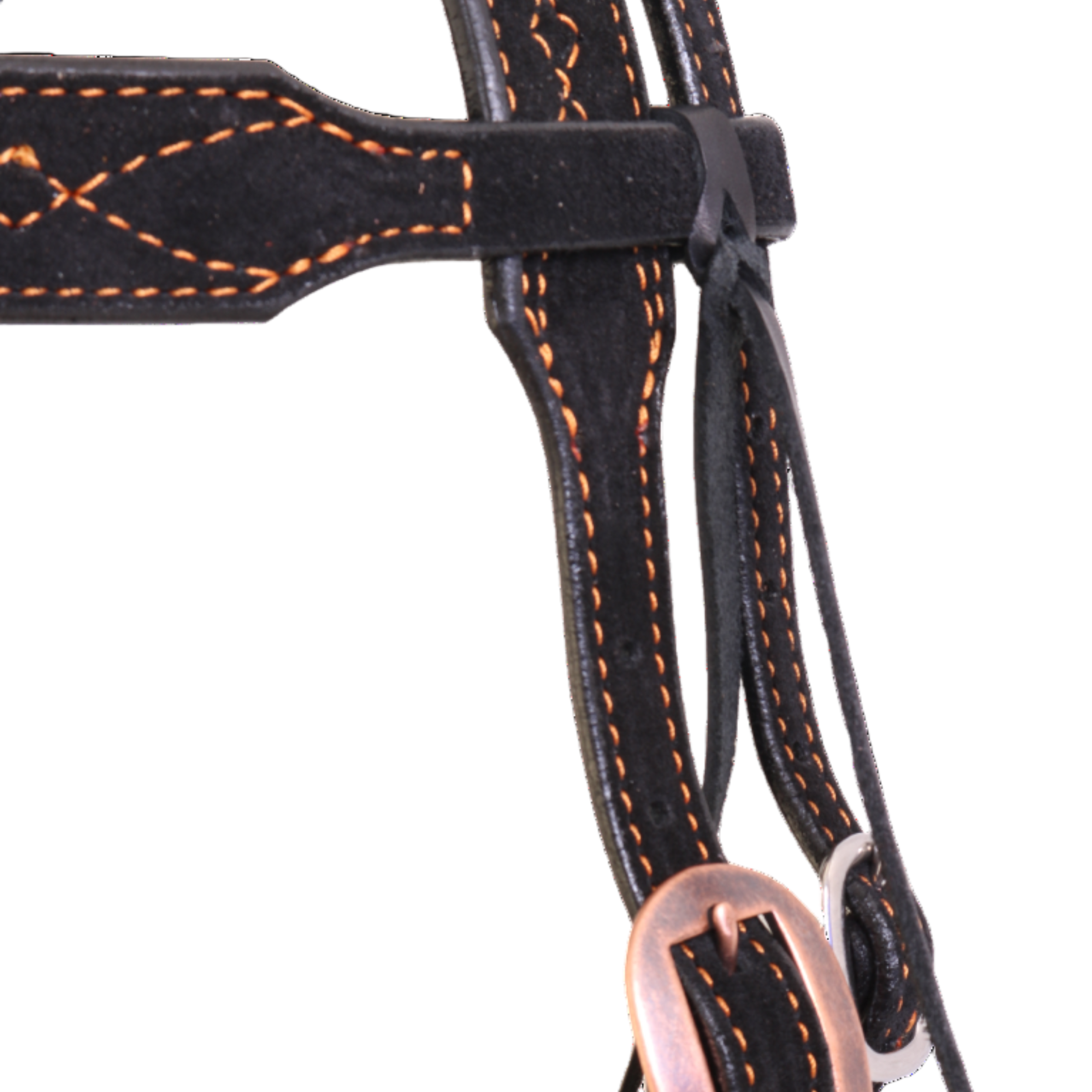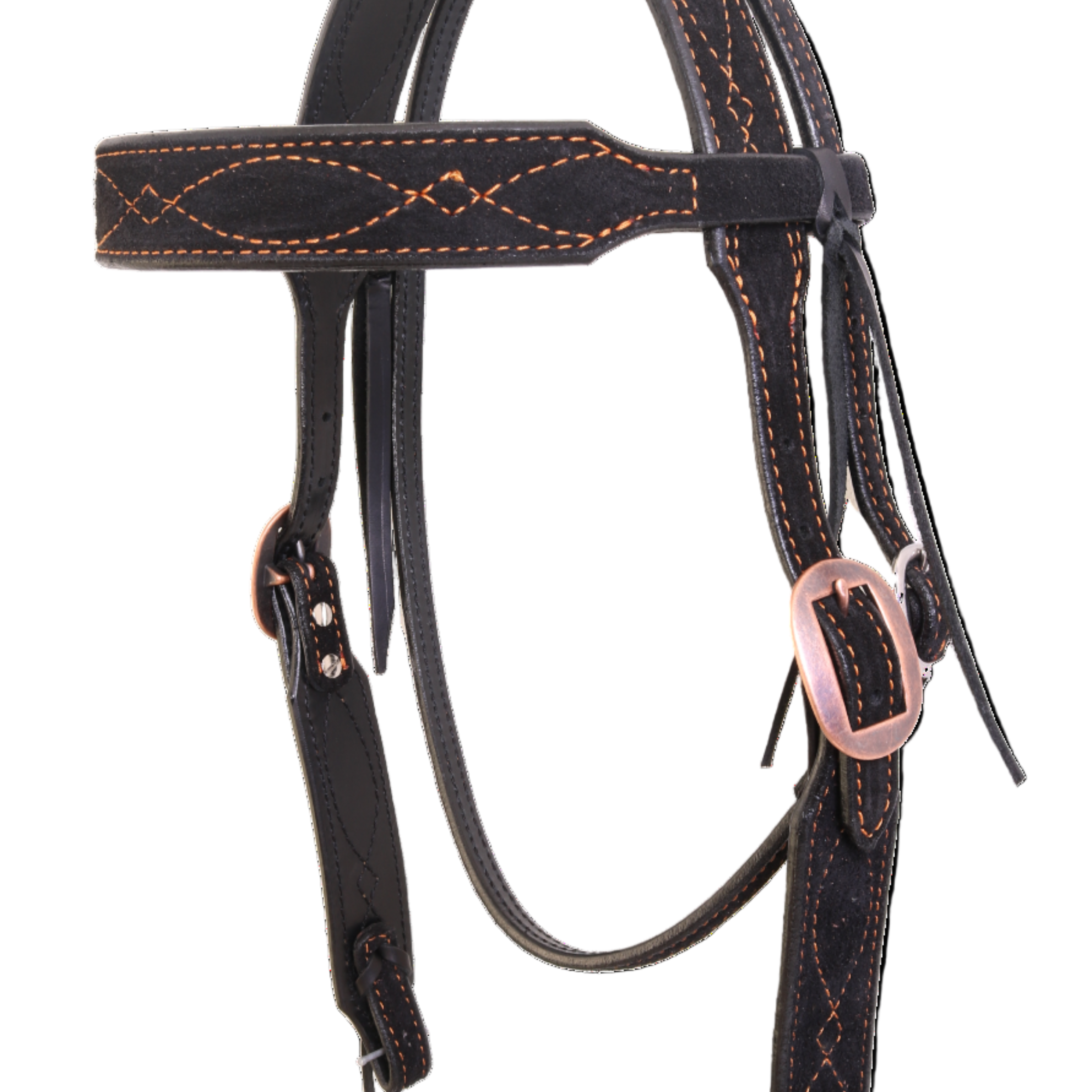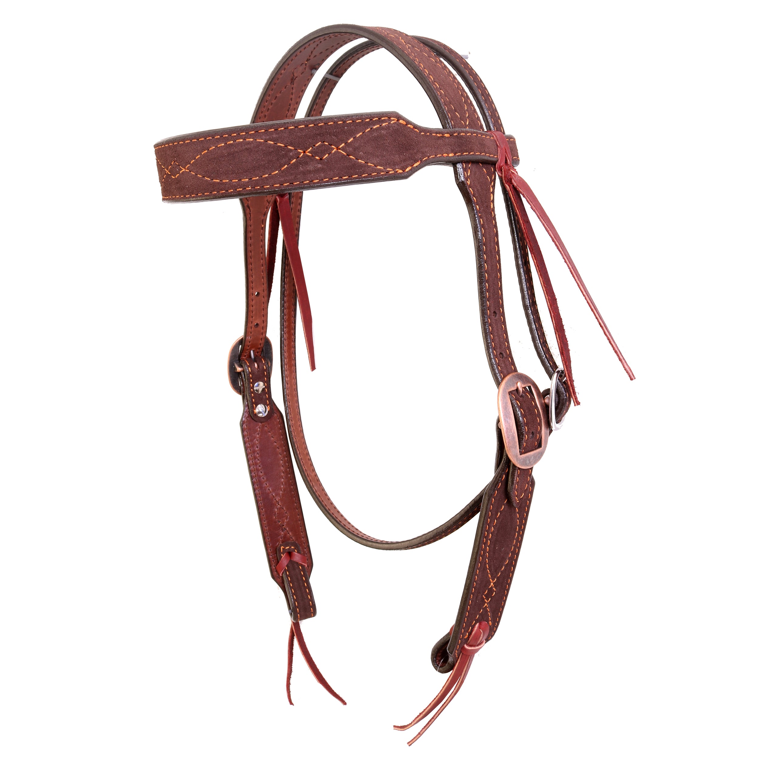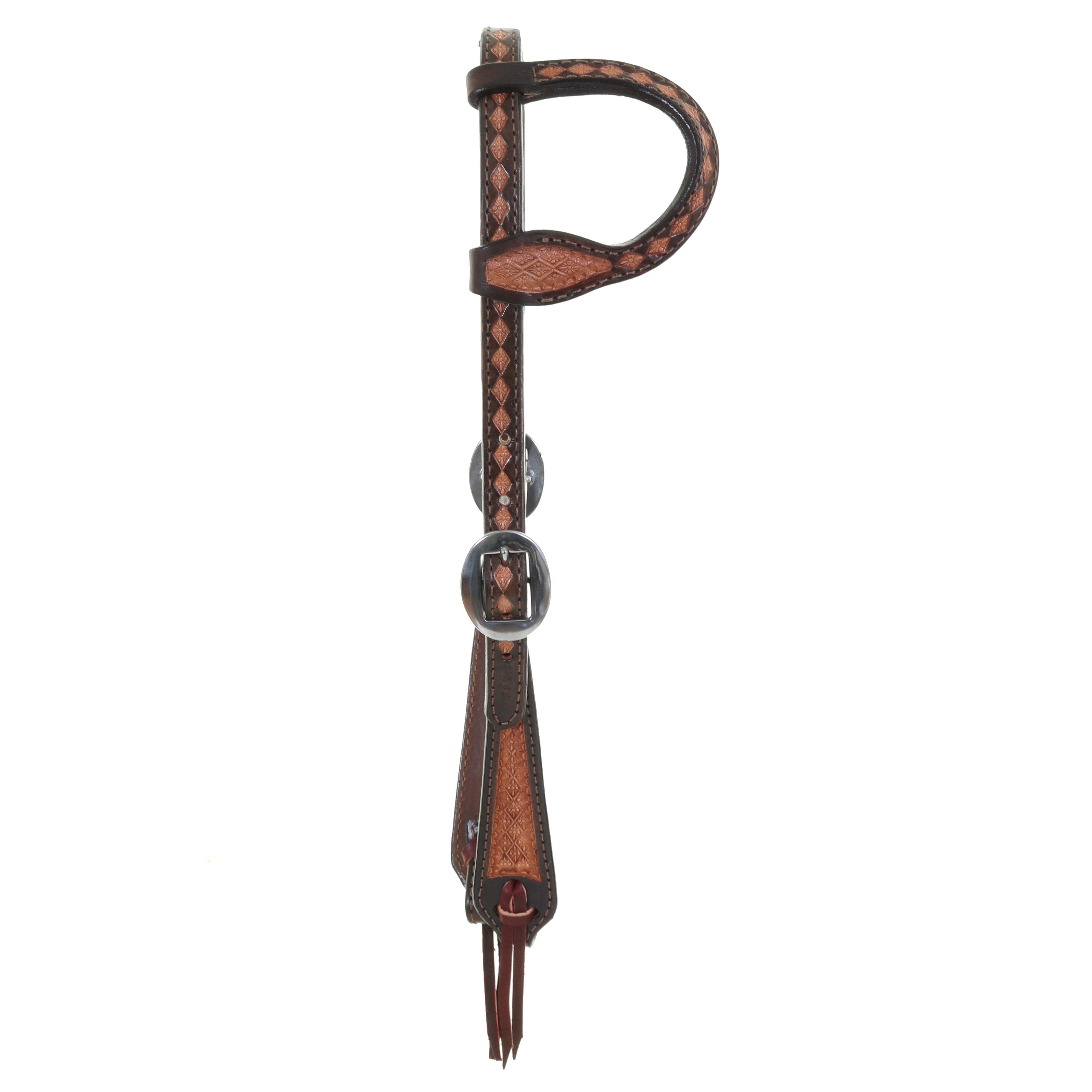Headstalls are available with either a regular cheek or a gag cheek depending on the bit you use. Regular headstalls, brow band or single ear, measure about 42" from bit end to bit end. Regular cheek lengths are about 8". Gag style headstalls will be about 2" shorter on each cheek piece, 4" overall. Crown piece is usually 28" long, with 5 holes approximately 1" apart on each side for lots of adjustment. Throat latch is about 38" long. Brow bands are around 16 1/2" long. Customization of lengths are available, just give us a call.