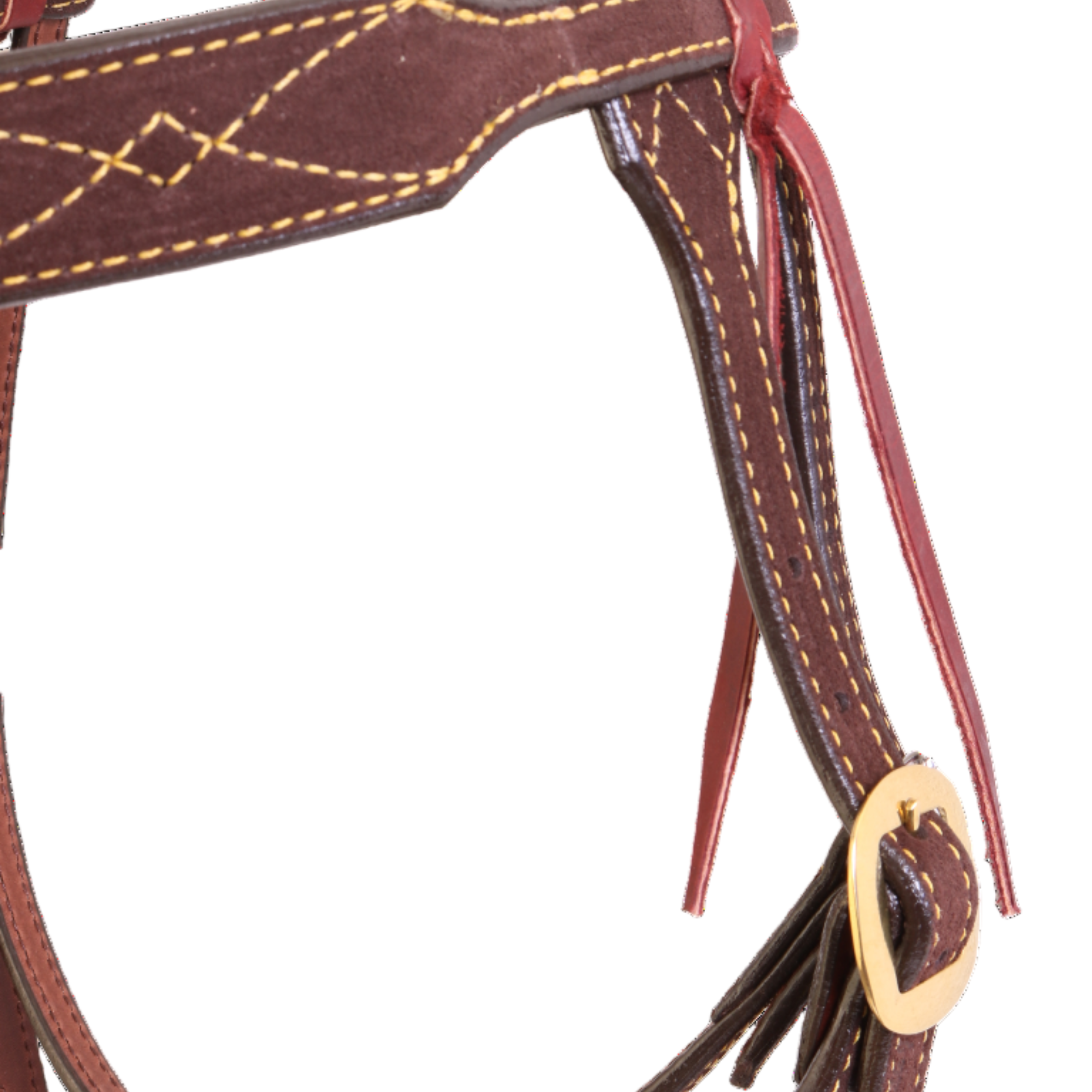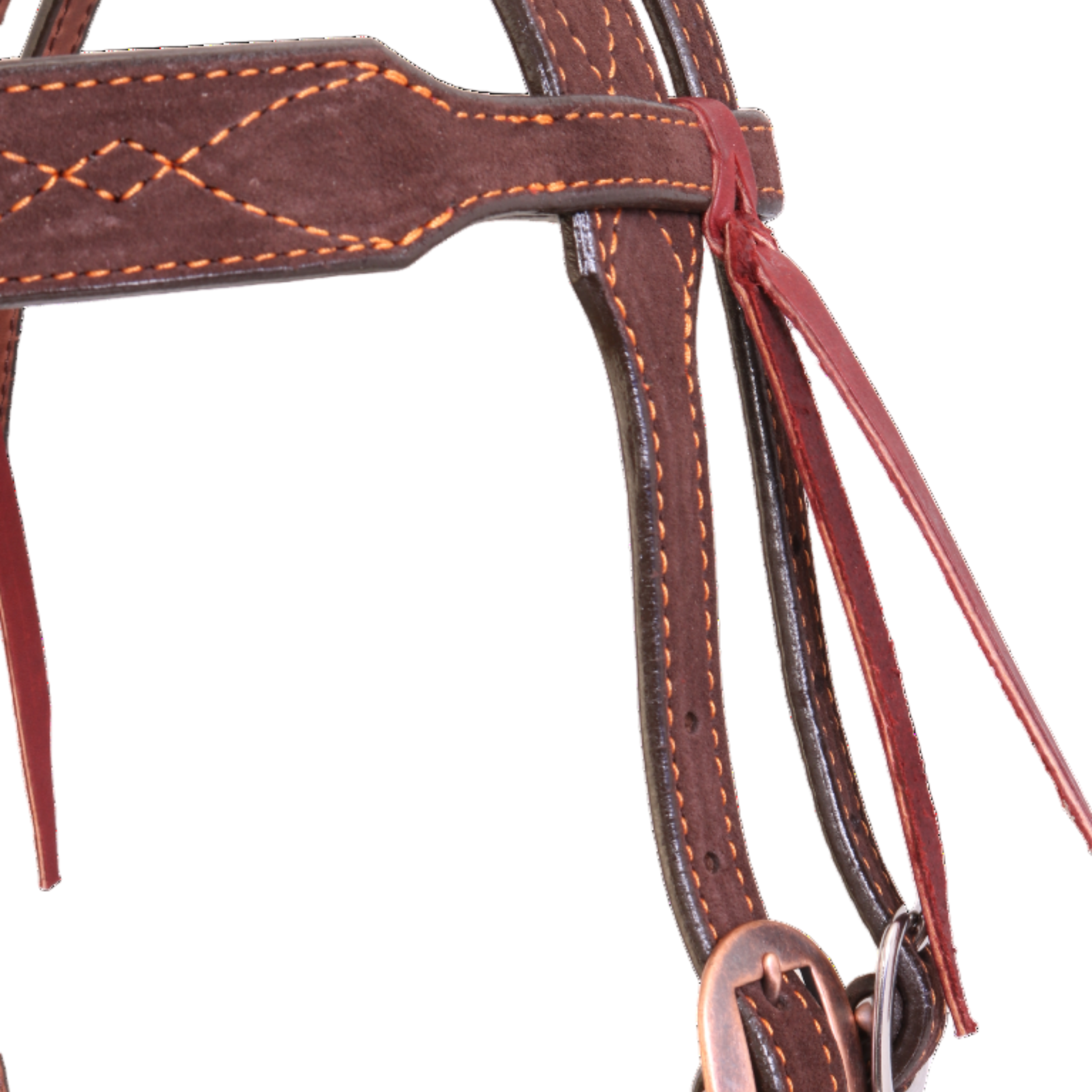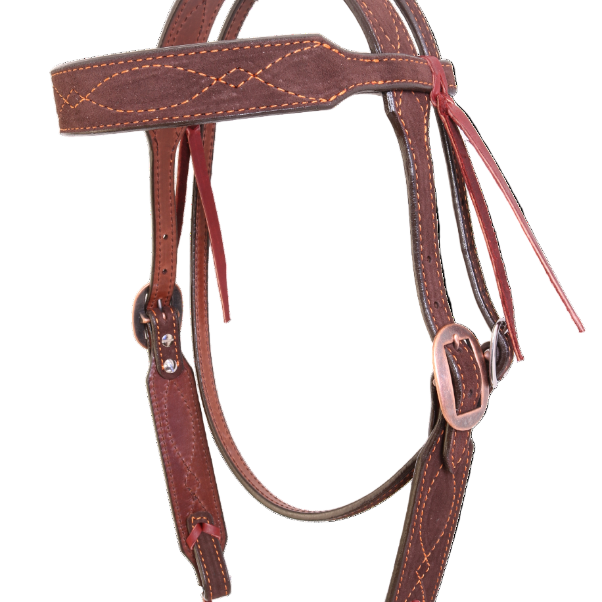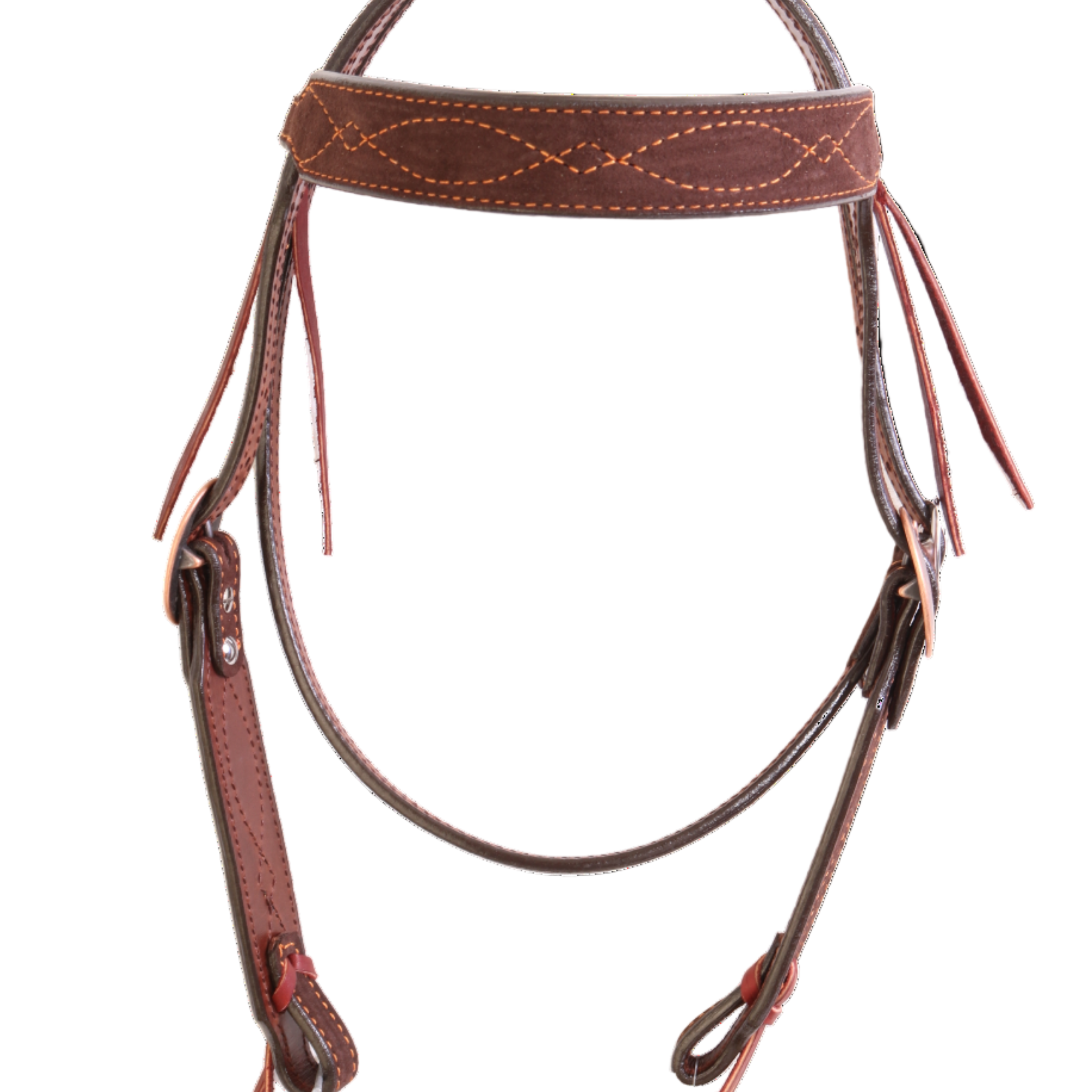Headstalls are available with either a regular cheek or a gag cheek depending on the bit you use. Regular headstalls, brow band or single ear, measure about 42" from bit end to bit end. Regular cheek lengths are about 8". Gag style headstalls will be about 2" shorter on each cheek piece, 4" overall. Crown piece is usually 28" long, with 5 holes approximately 1" apart on each side for lots of adjustment. Throat latch is about 38" long. Brow bands are around 16 1/2" long. Customization of lengths are available, just give us a call.