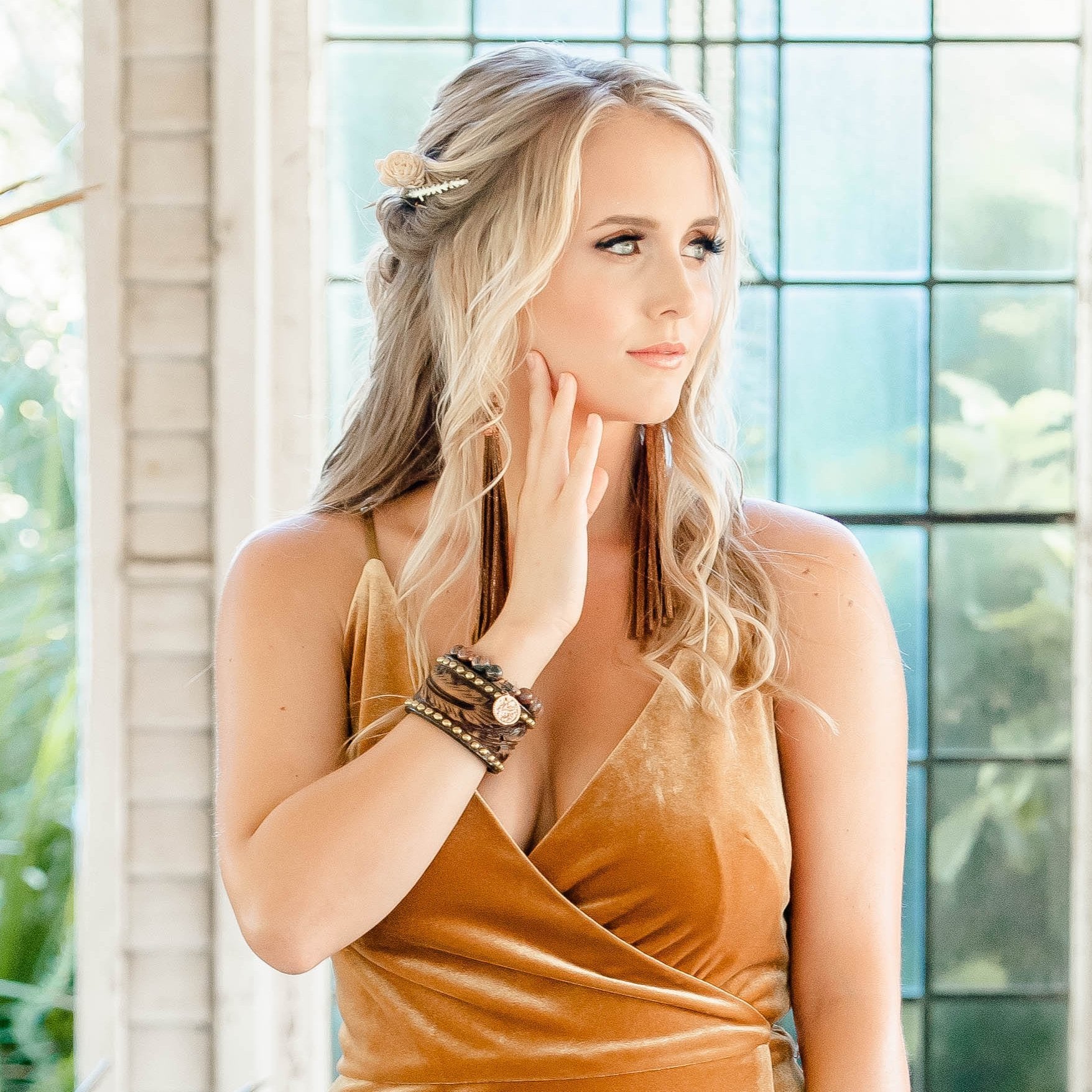 1-1/2" brown vintage feather tooled cuff with edges lined in brass dots.