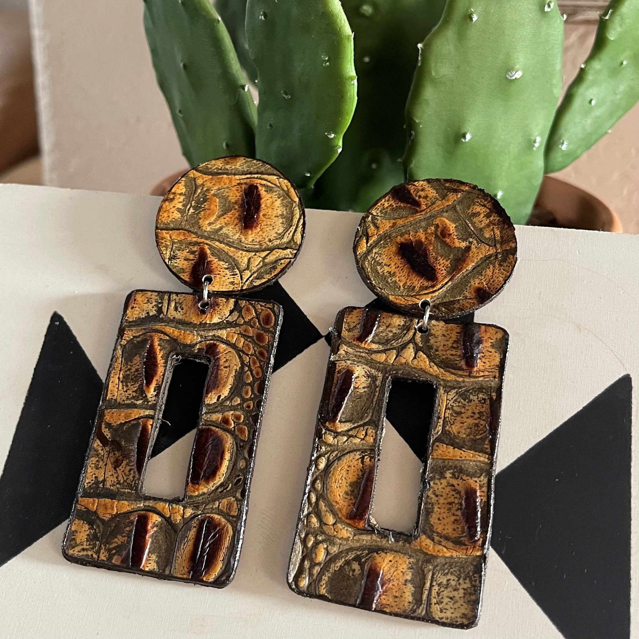 Retro rectangle earring in Savannah Hornback Gator