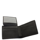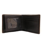 Bifold wallet in Safari Tan Elephant print leather on both sides. Includes double sided picture window for driver's license or other I.D, 6 slots for credit cards, etc., 2 long dividers for cash, etc.