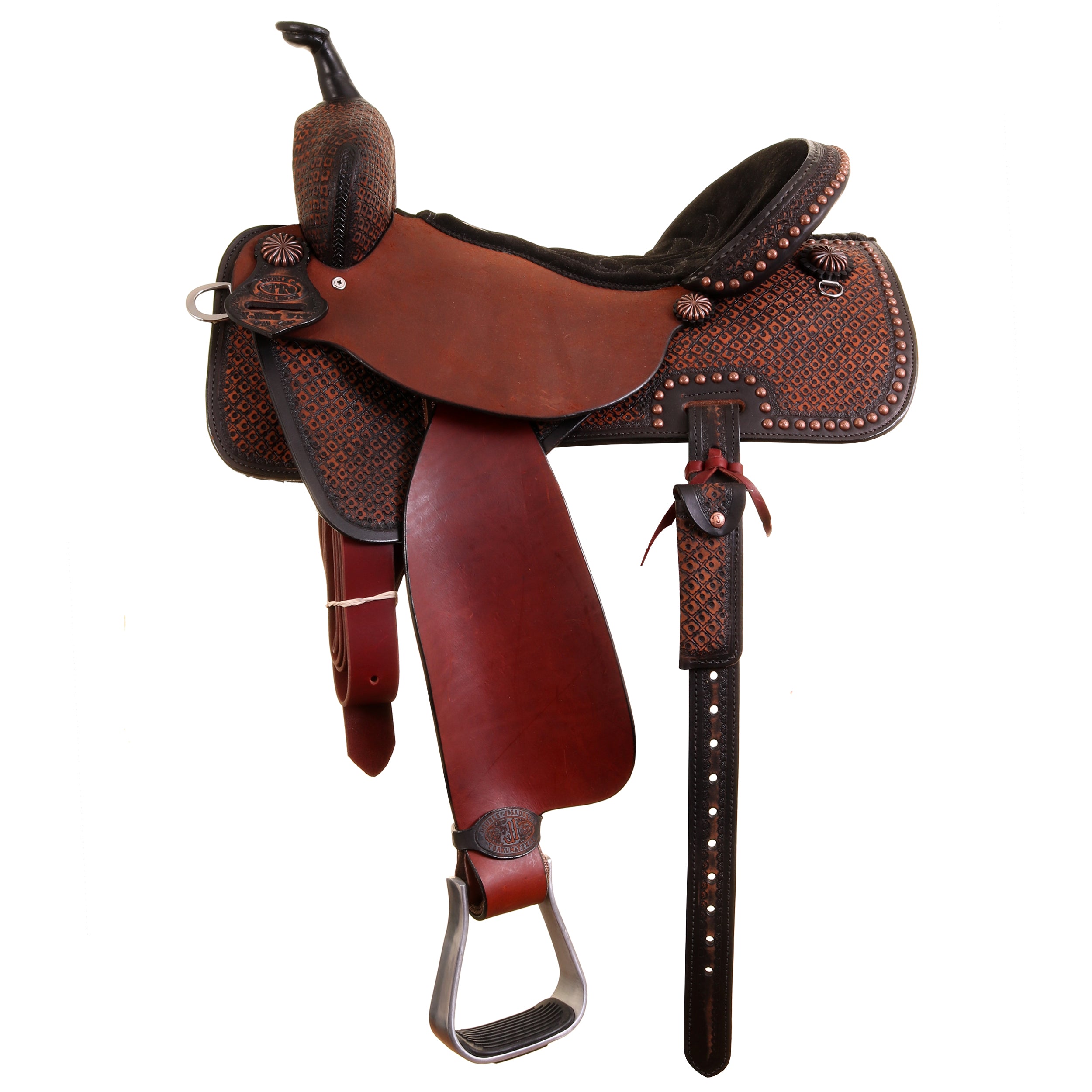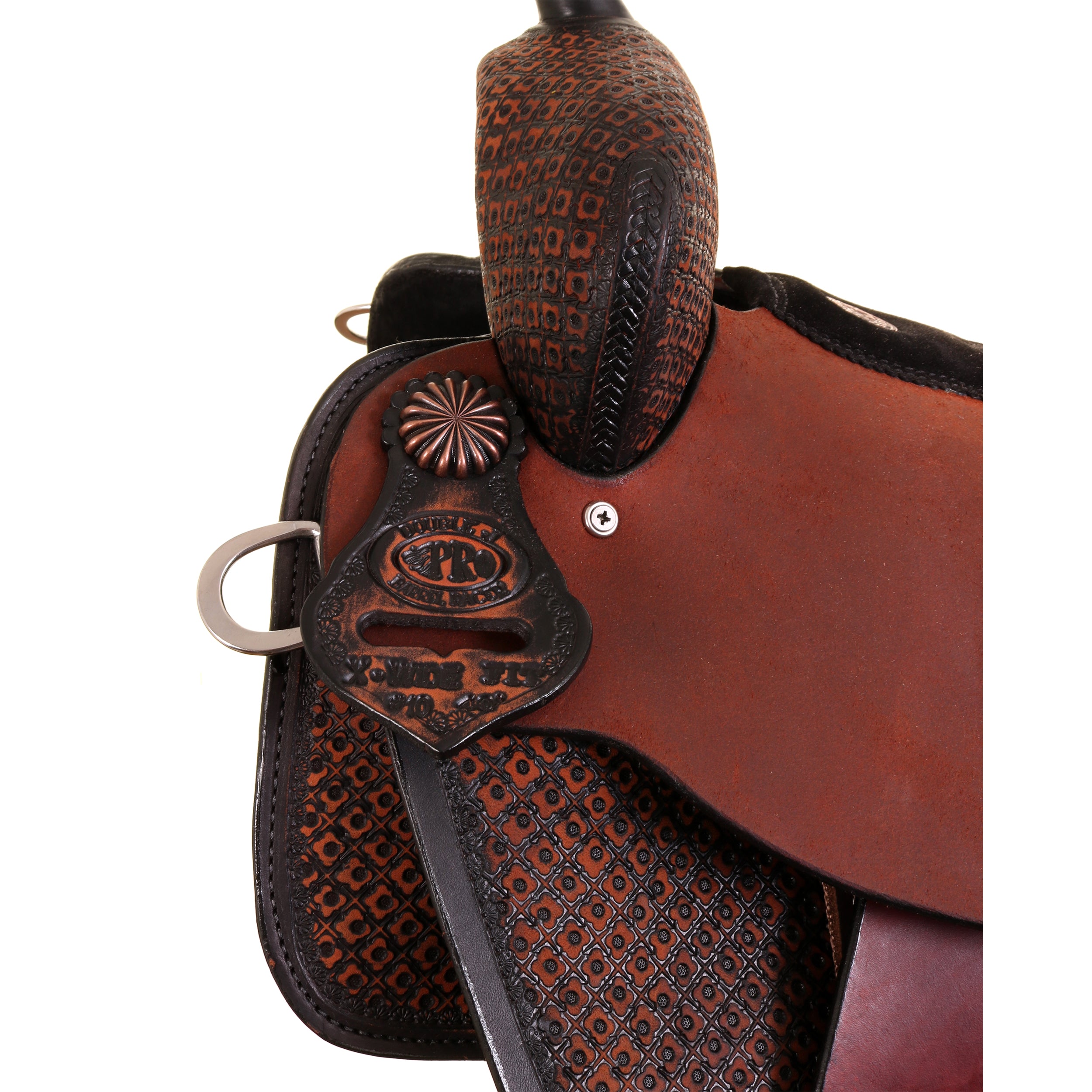 Double J Pro Barrel Saddle Leather: Black Chestnut Vintage