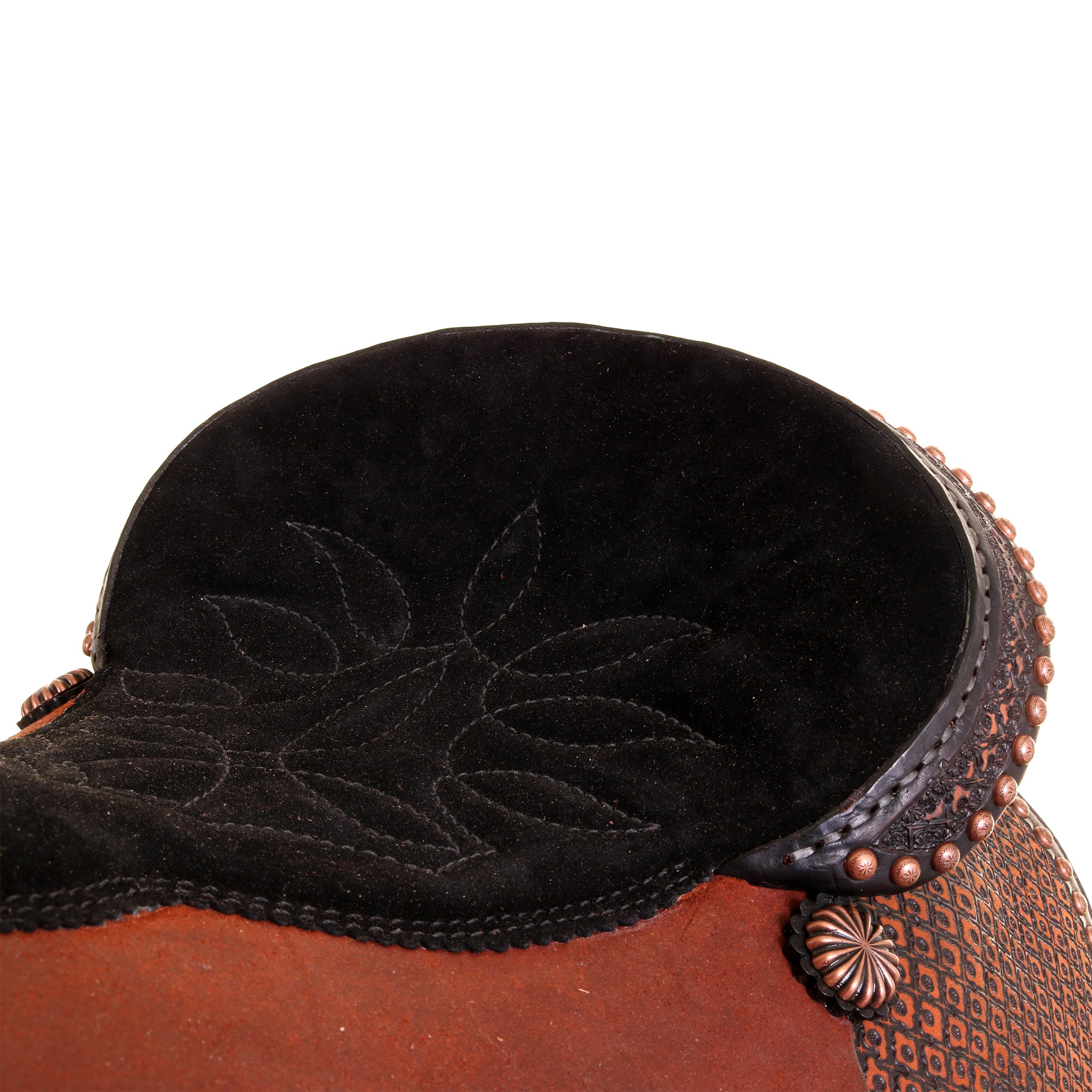 Cantle: Tooled Cheyenne Roll w/ Copper Dots & Tooled Back
