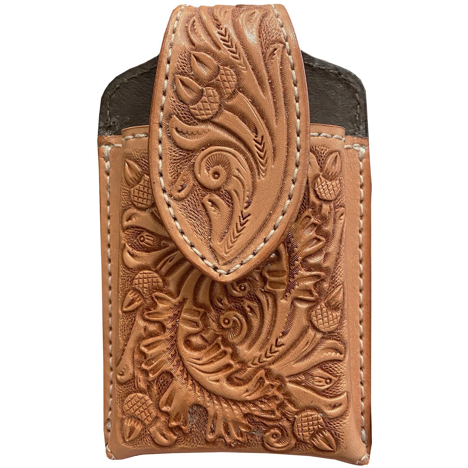CPC75 - Natural Leather Tooled Cell Phone Holder