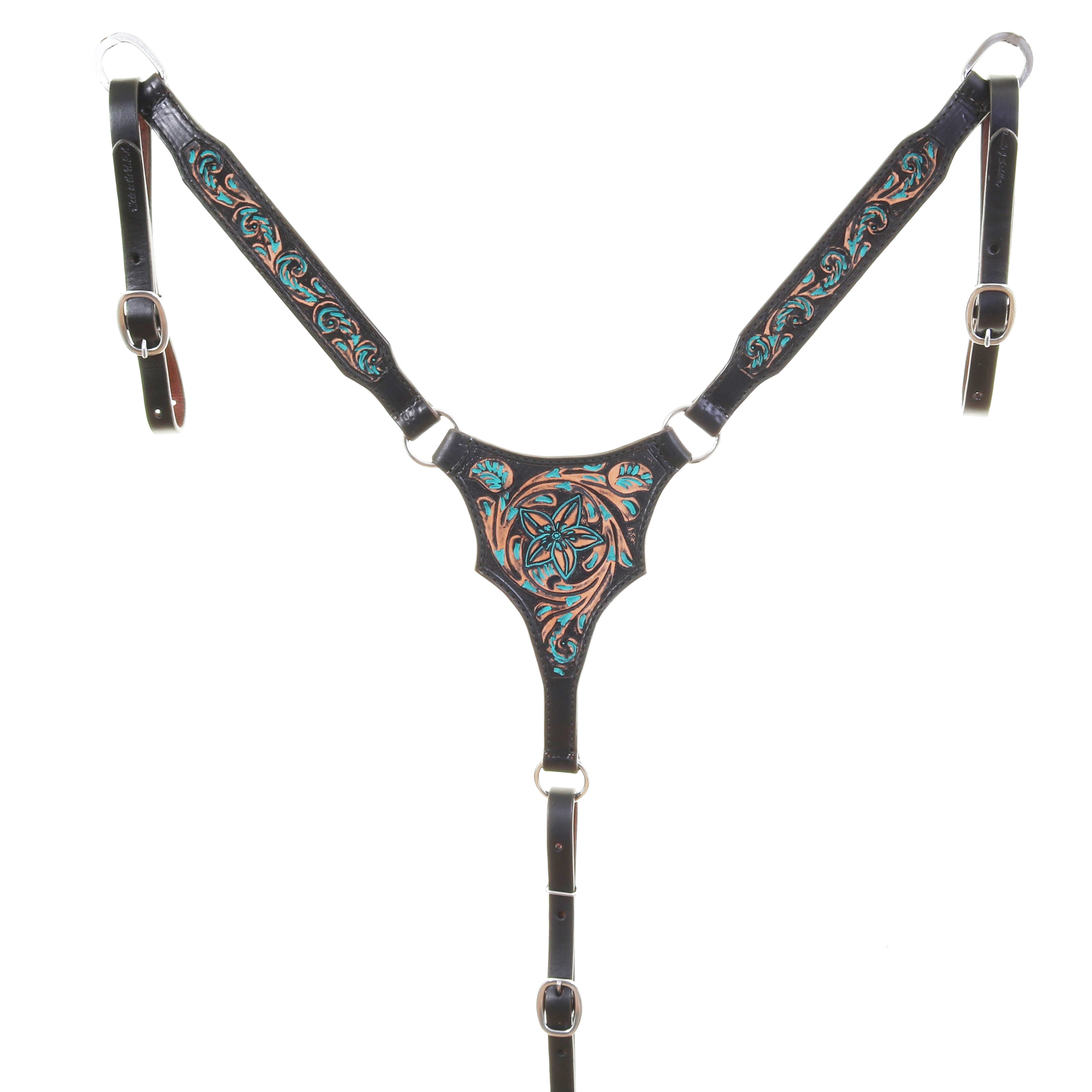 3 Piece Pozzi Floral Tooled Fancy Body Breast Collar with Turquoise Hi Lites