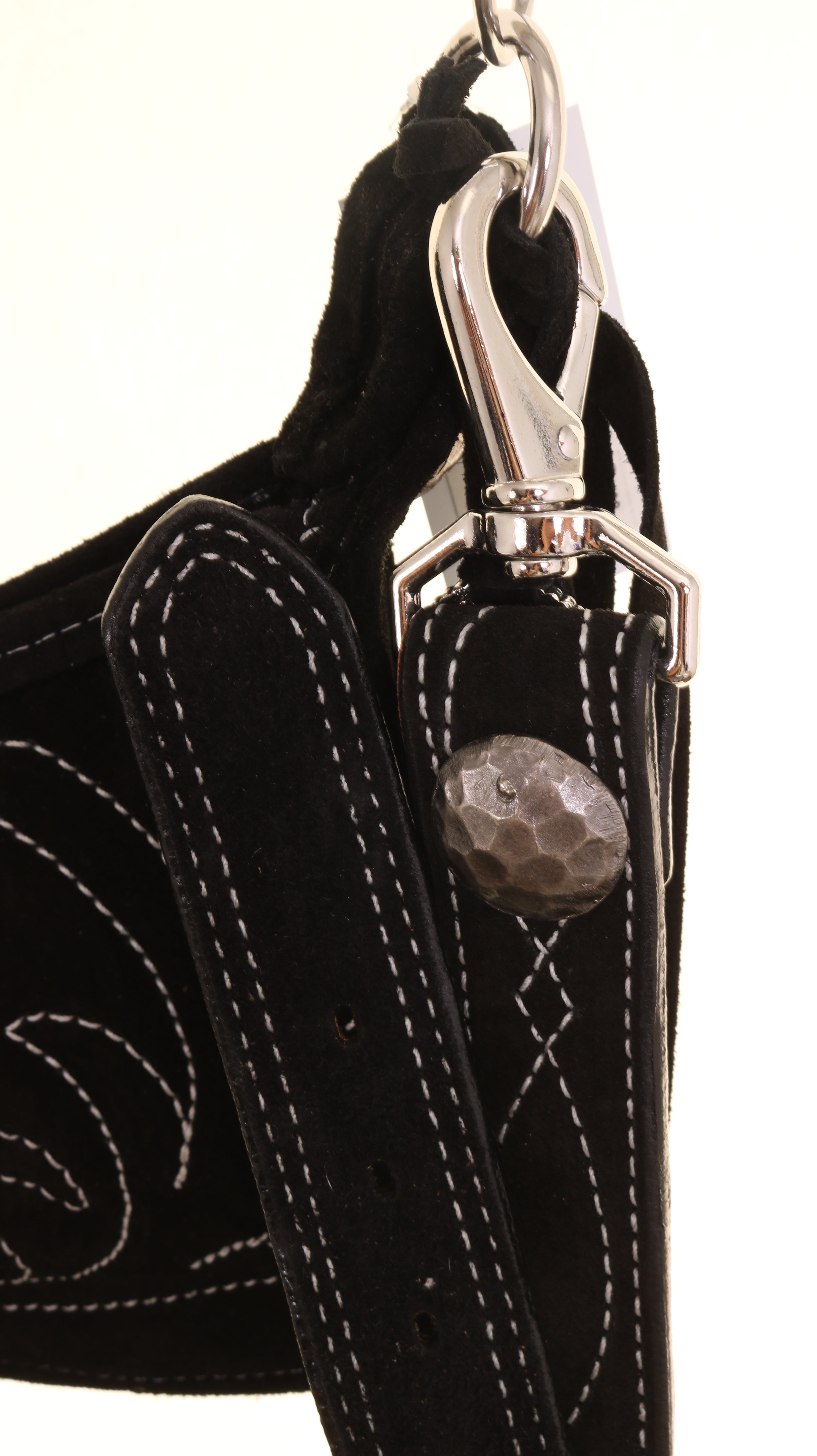 Black Suede DJ Purse with white saddle stitch