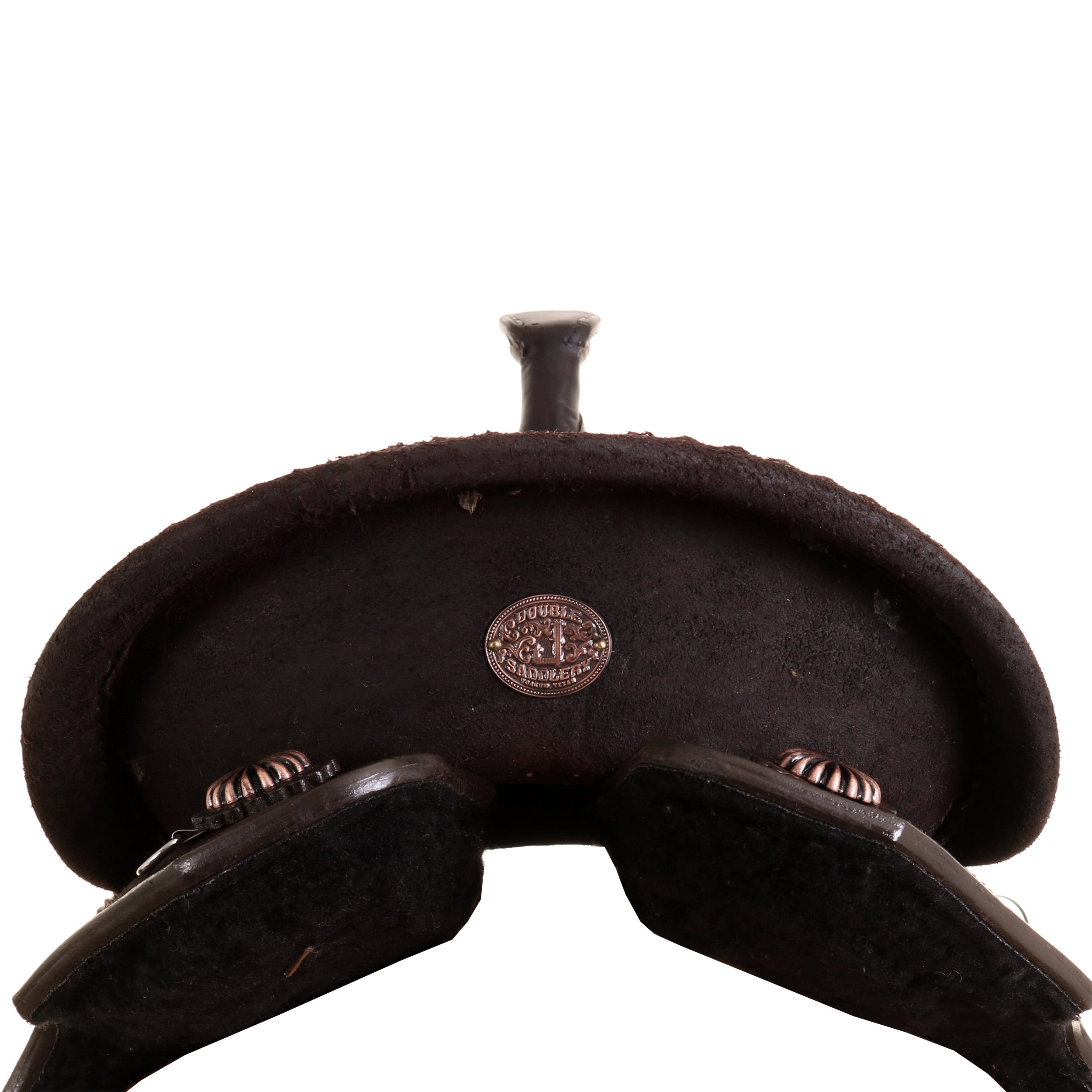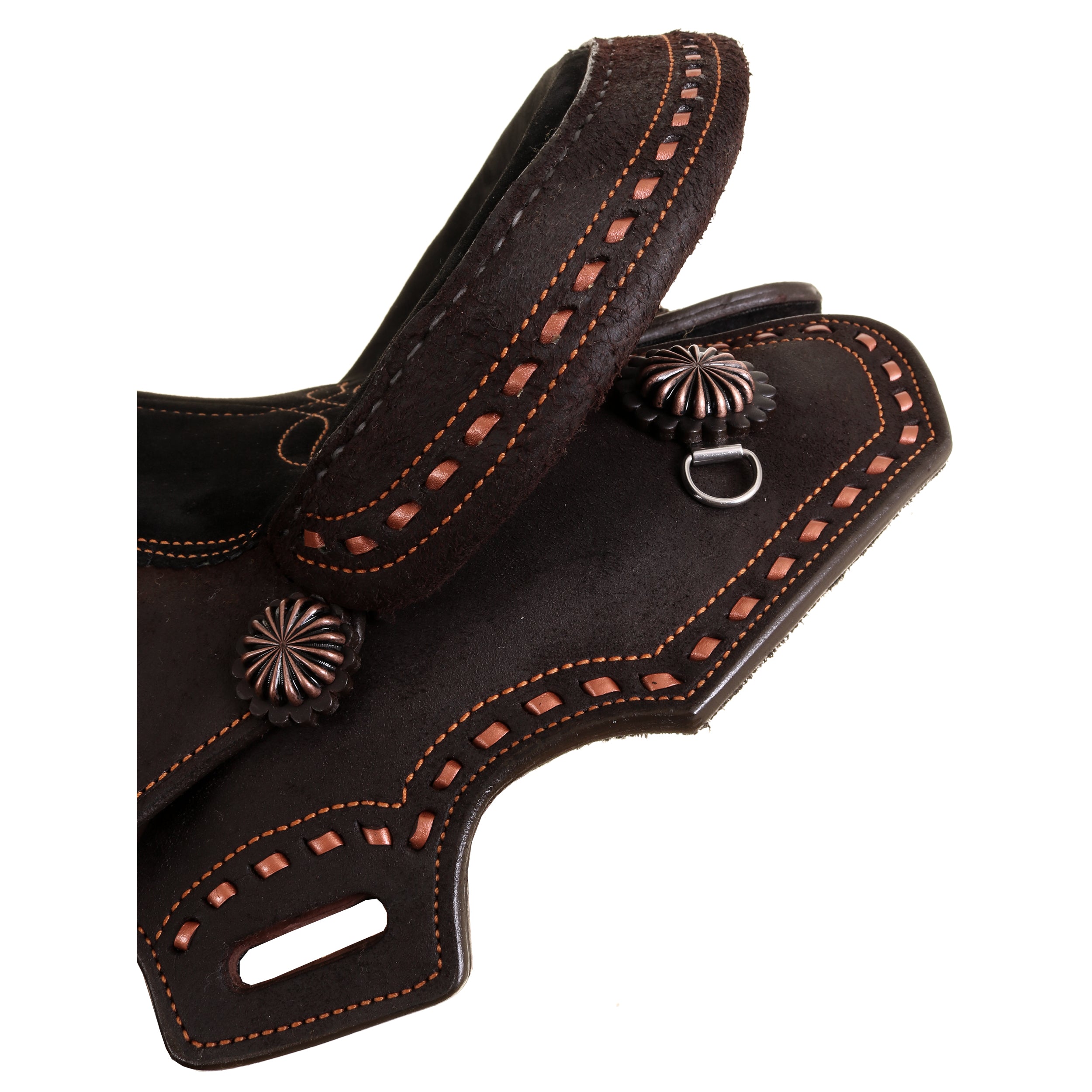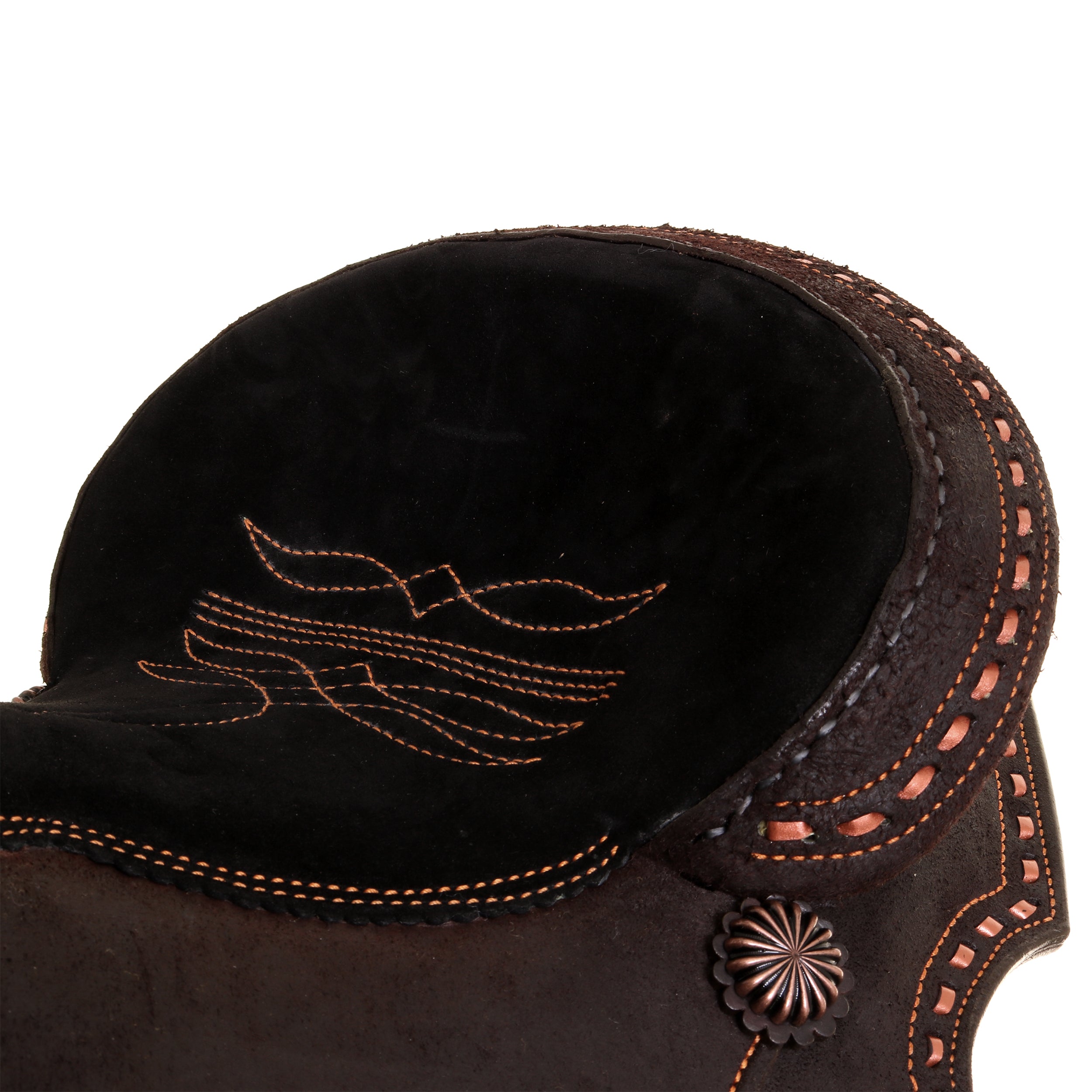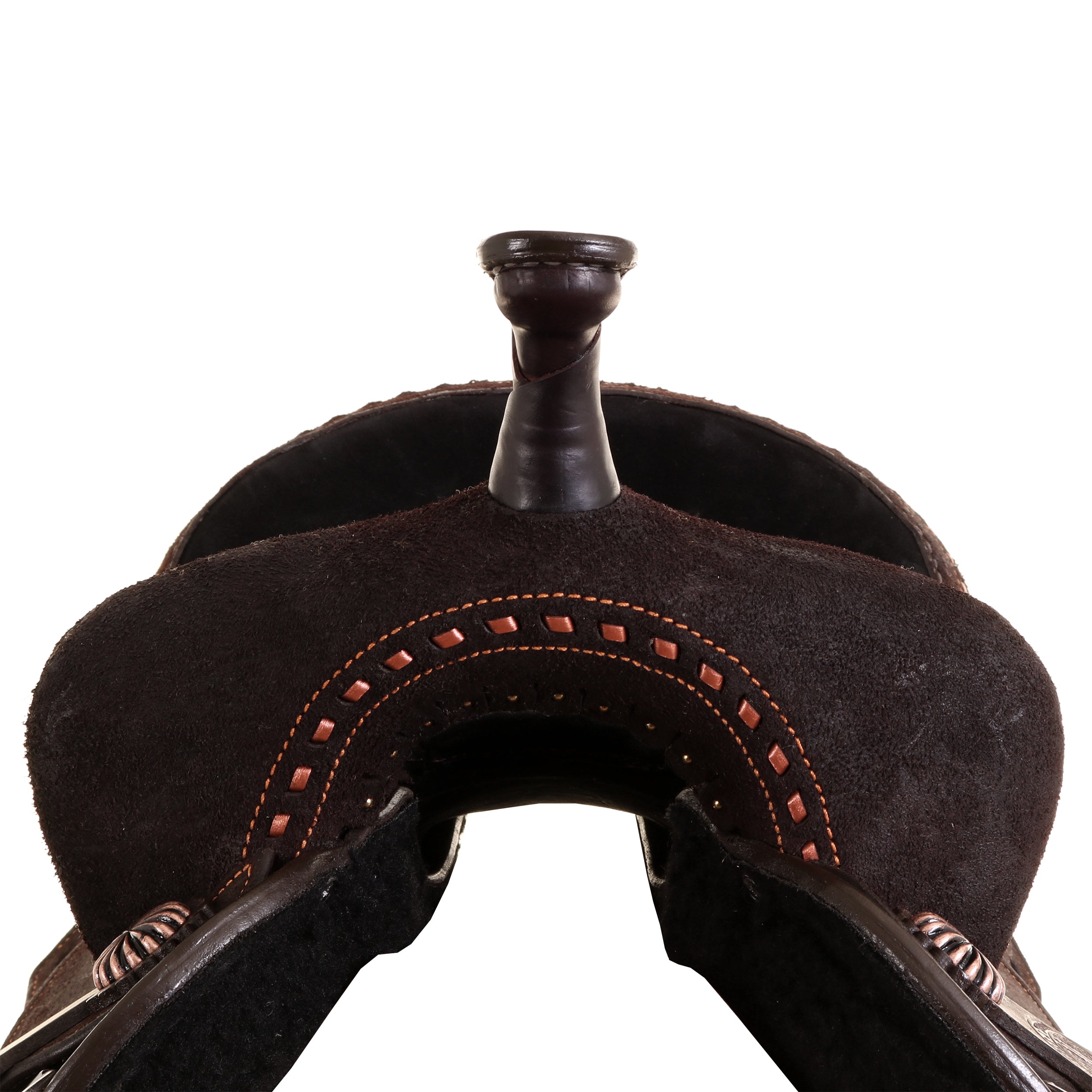 Cantle: Brown Roughout - Cheyenne Roll with Double Row Copper Thread & Copper Buckstitch