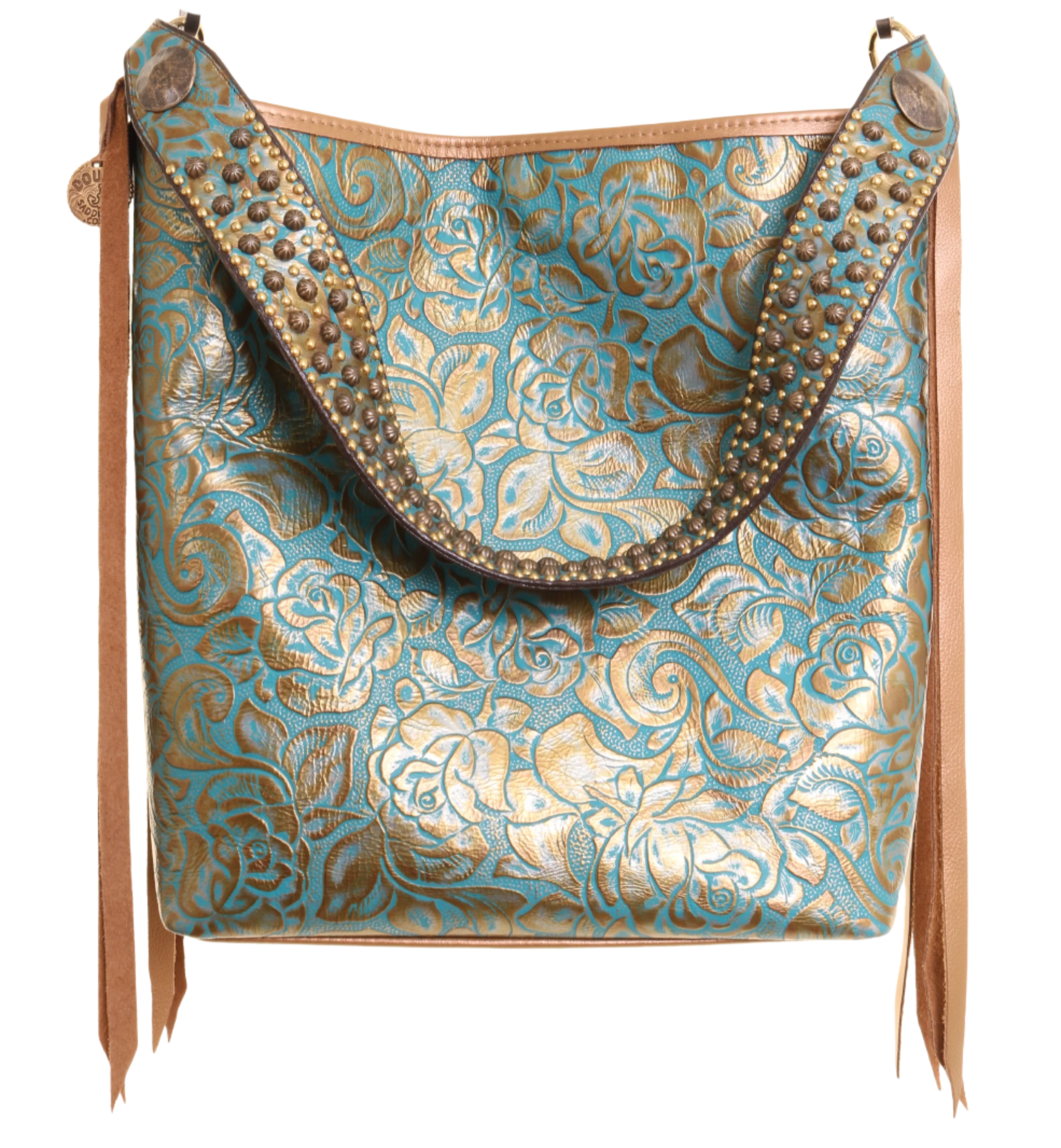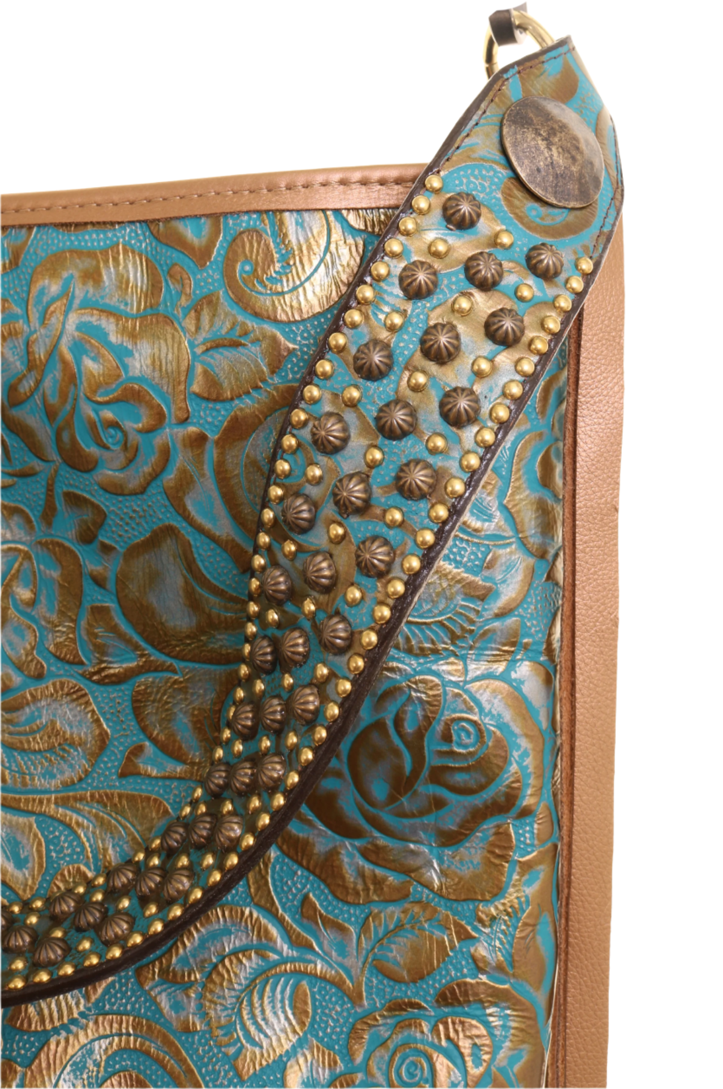MST80 - Golden Turquoise Roses Messenger Tote
