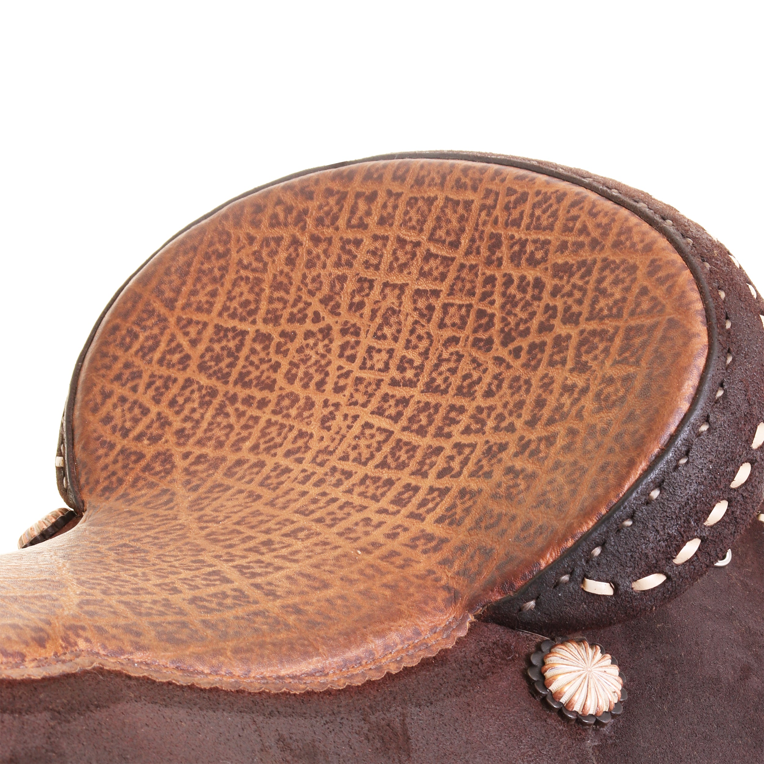 Cantle: Brown Roughout - Cheyenne Roll with Cream Buck Stitch
