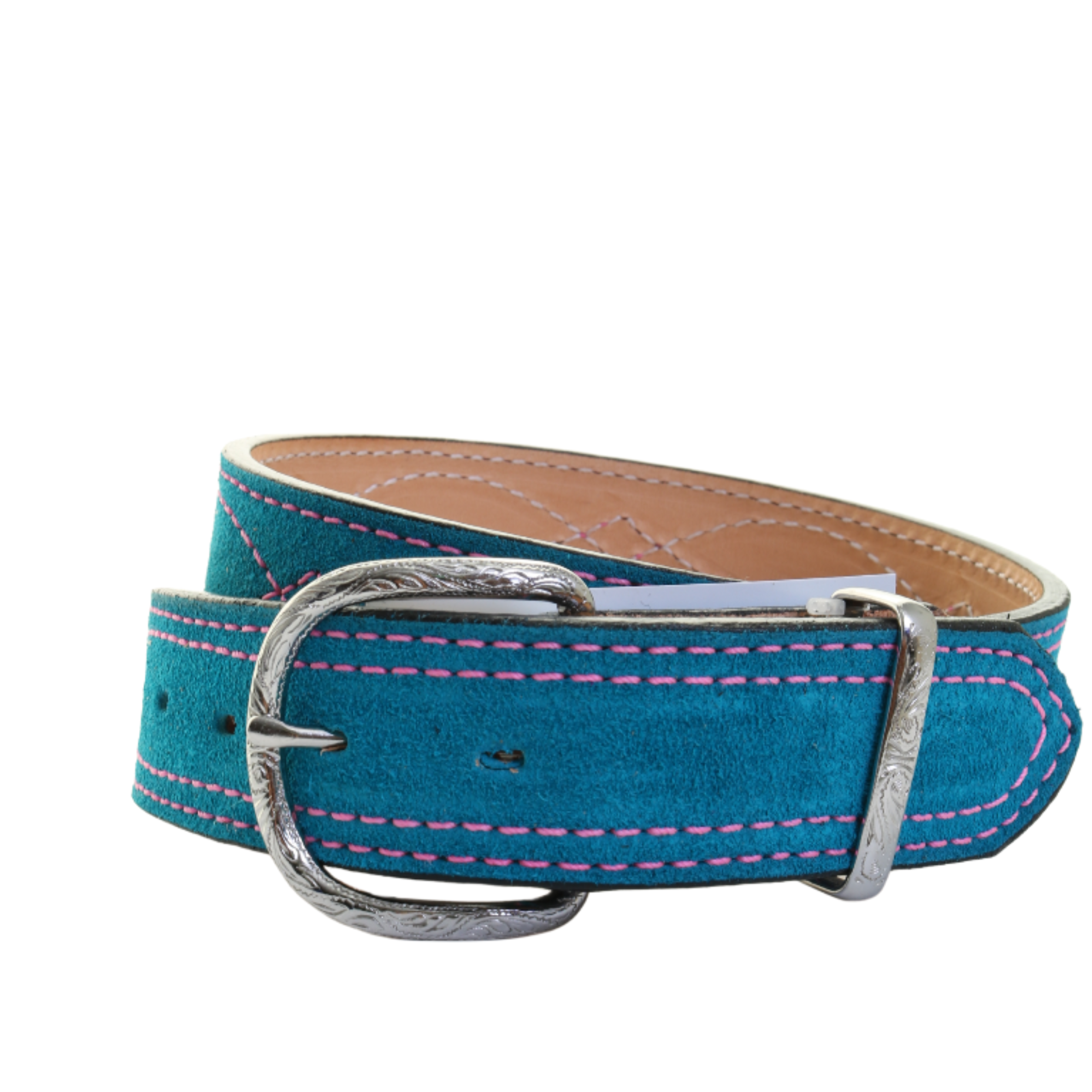 B1225D - Turquoise/Pink Suede Belt
