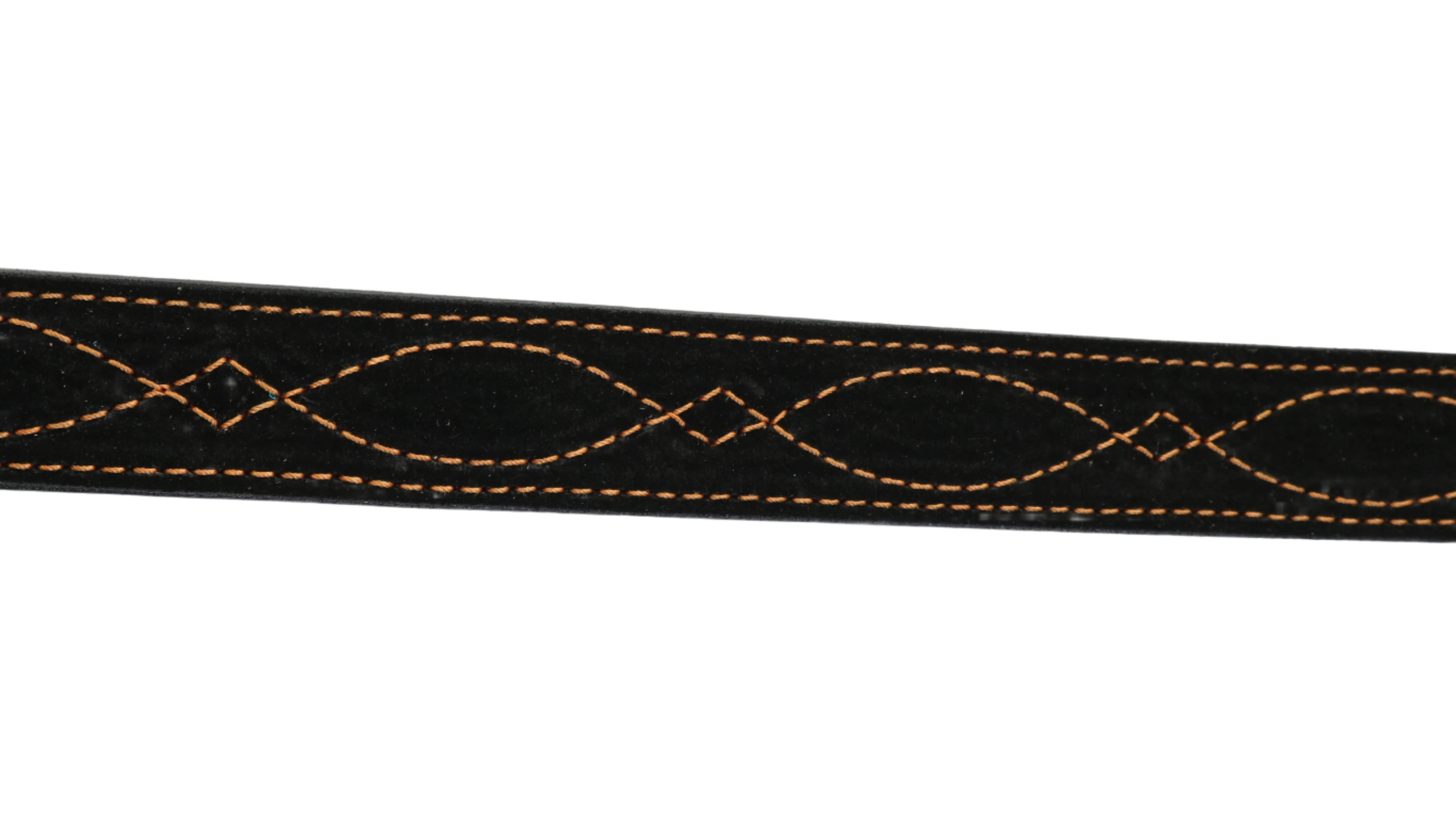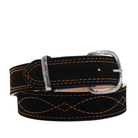 Black suede leather stitched in copper thread with our classic Gunslinger pattern! Straight 1 1/2” belt.