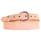 1 1/4" Tapered to 1" Belt in Natural Rough Out Leather with Small White Stitching.
