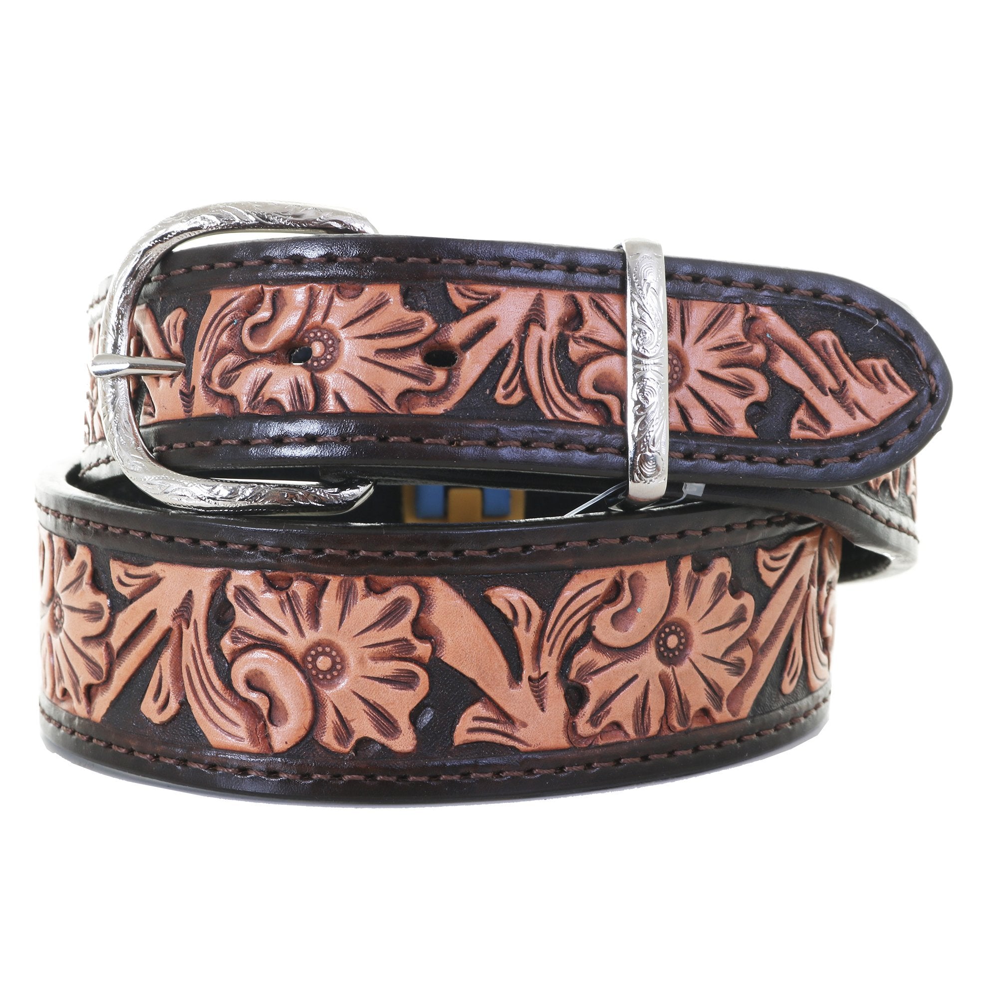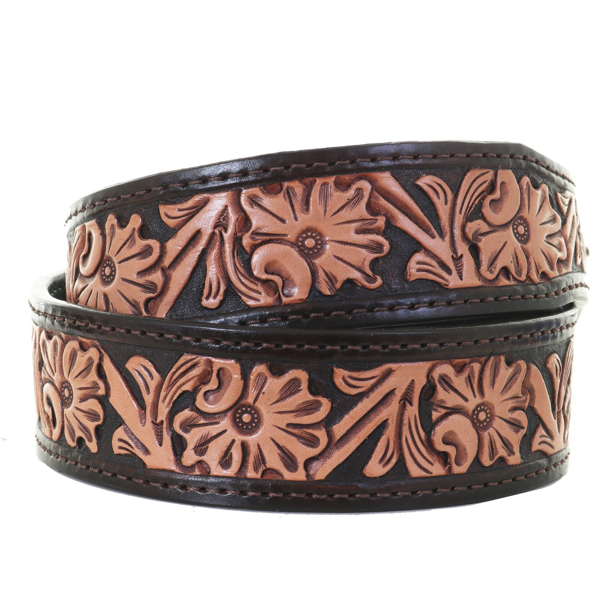 B731A - Natural Floral Tooled Belt