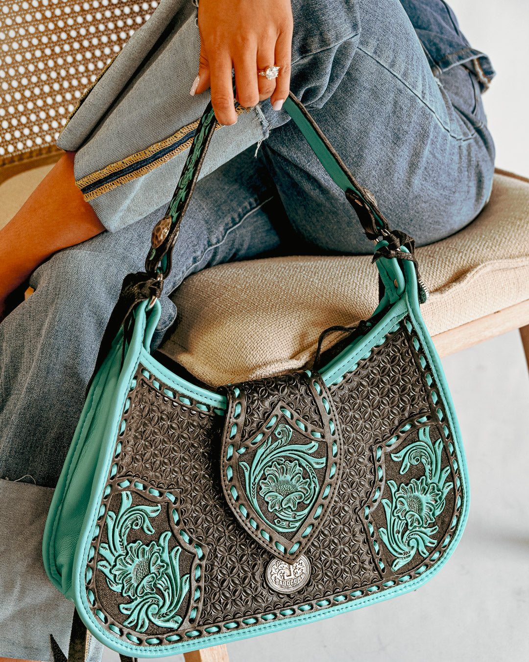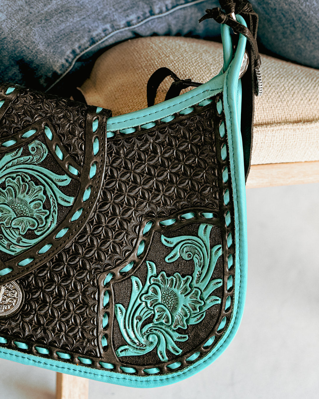 XLDJ85 - Egg Shell Daisy Tooled Purse