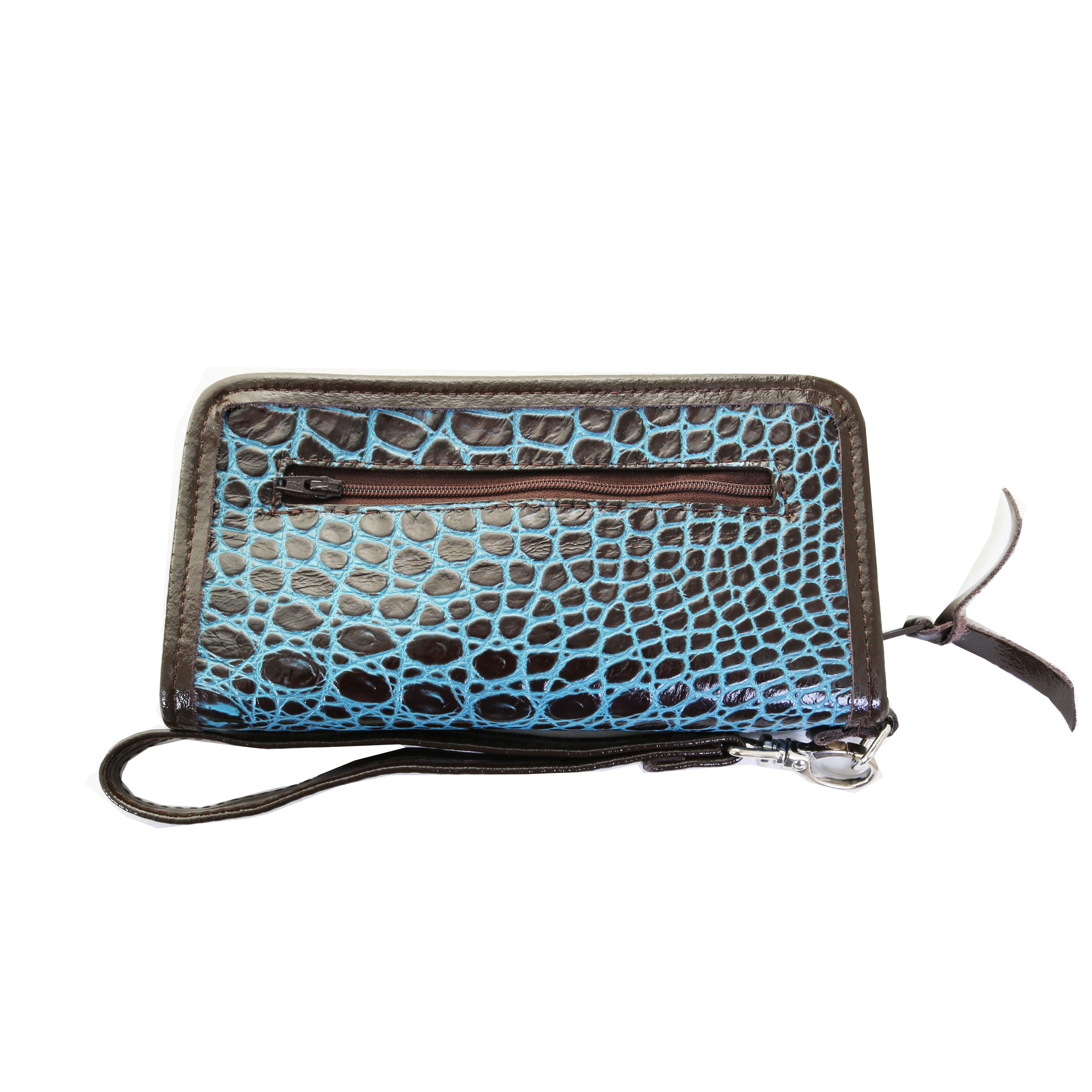 Stay organized in style with this ladies' zipper wallet, crafted in bold blue Albuquerque croc and accented with crackle trim and a matching wristlet. Sleek and functional, it’s the perfect accessory for everyday use or on the go