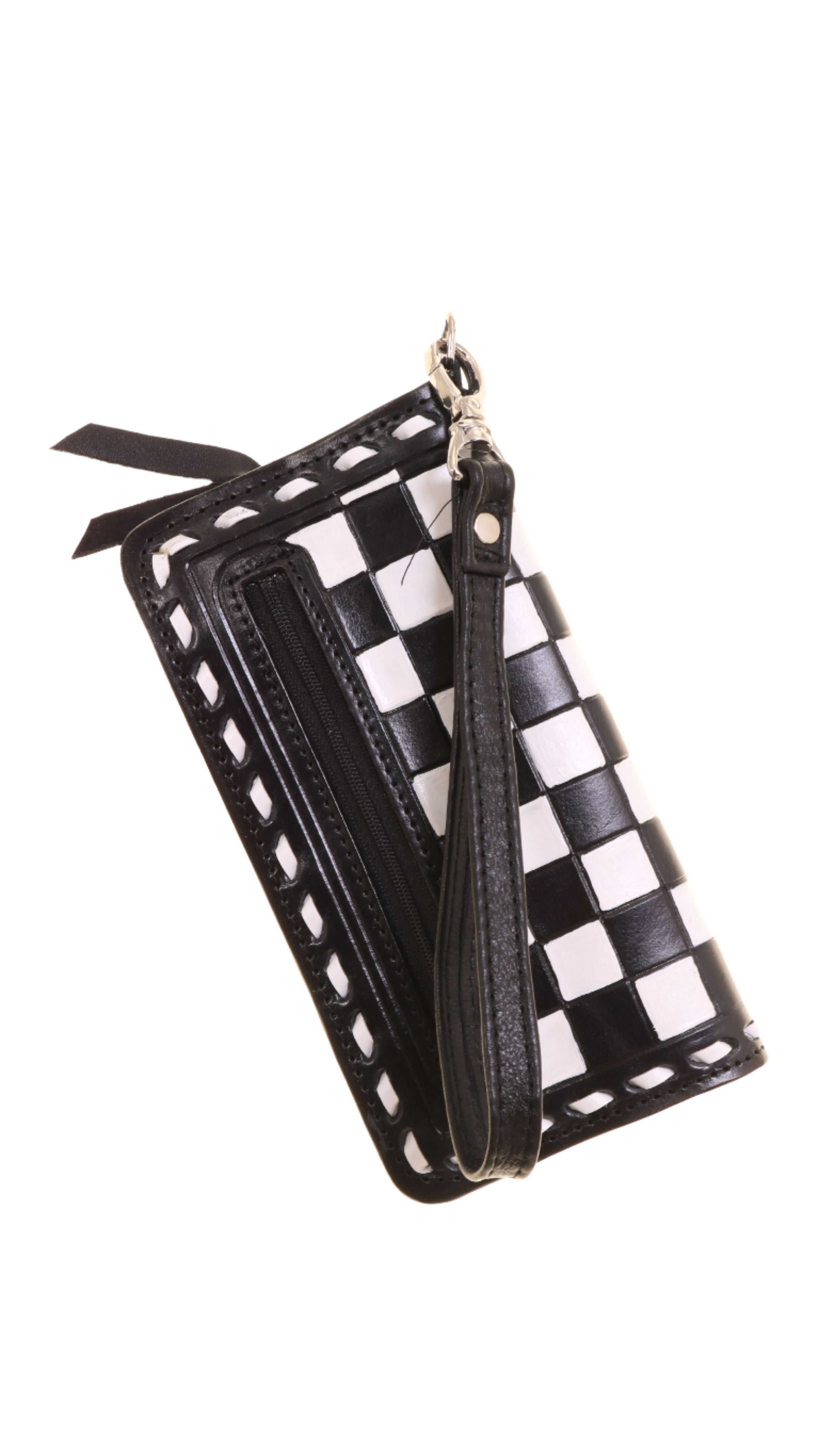 Ladies Zipper Wallet with Hand Painted Checkered Pattern on Front & Back