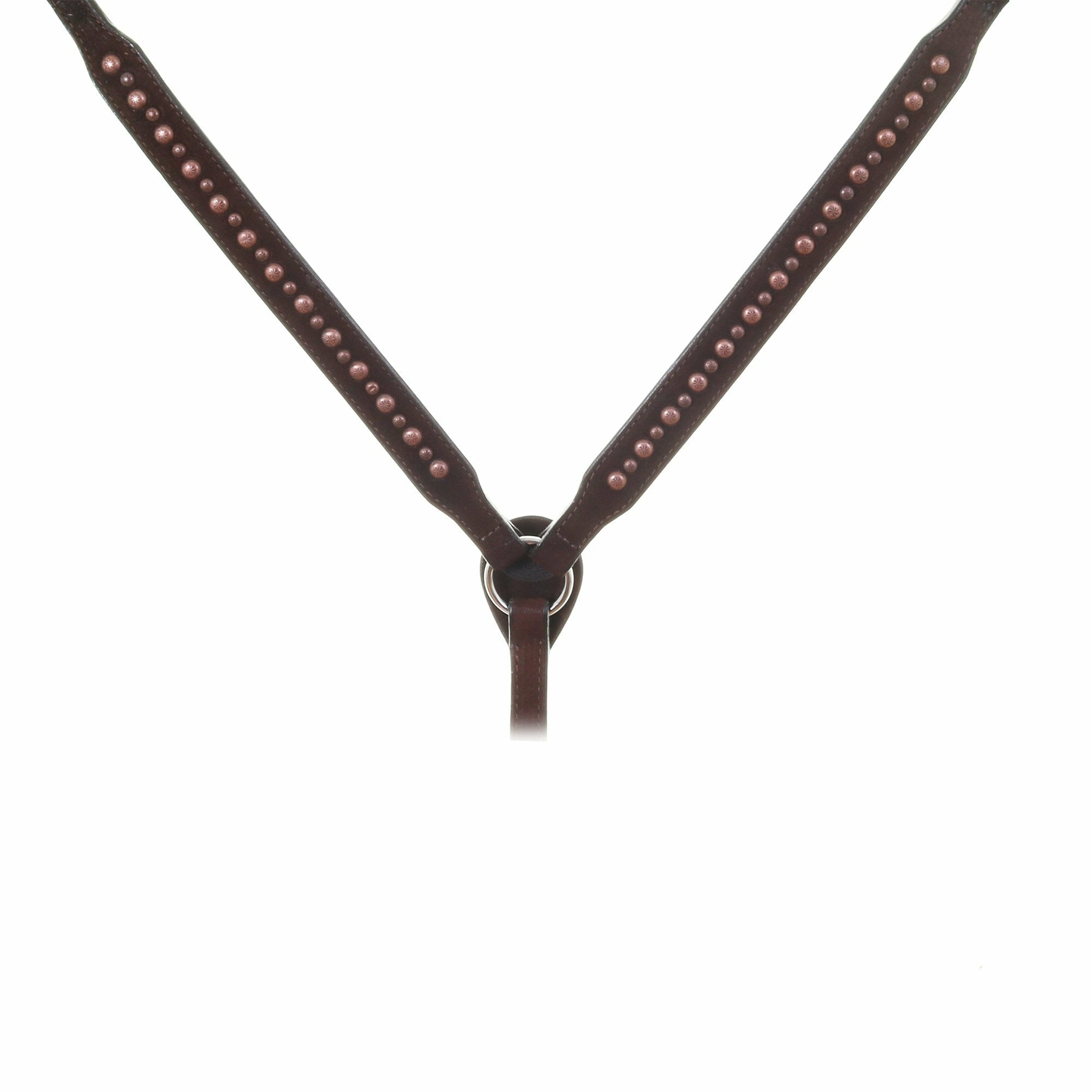 Brown rough out breast collar with alternating sizes of antique copper engraved dots down center.