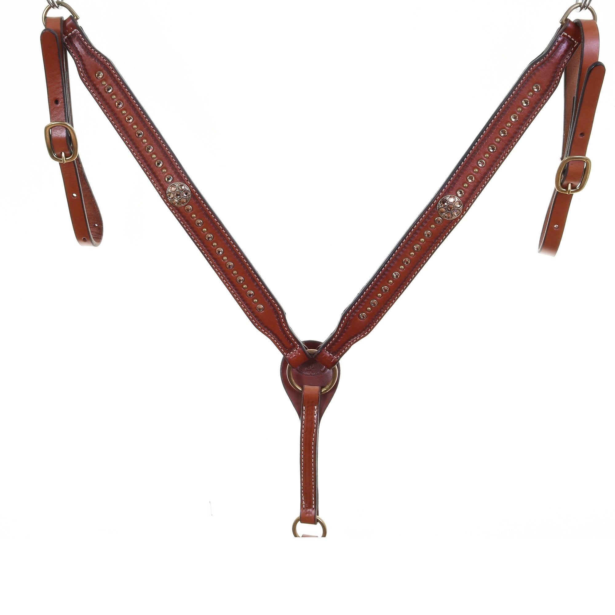 Chestnut - Ric Rac Tooling - Alternating Light Colorado Topaz Crystal & Brass Dots - Matching Crystal Wheel Conchos