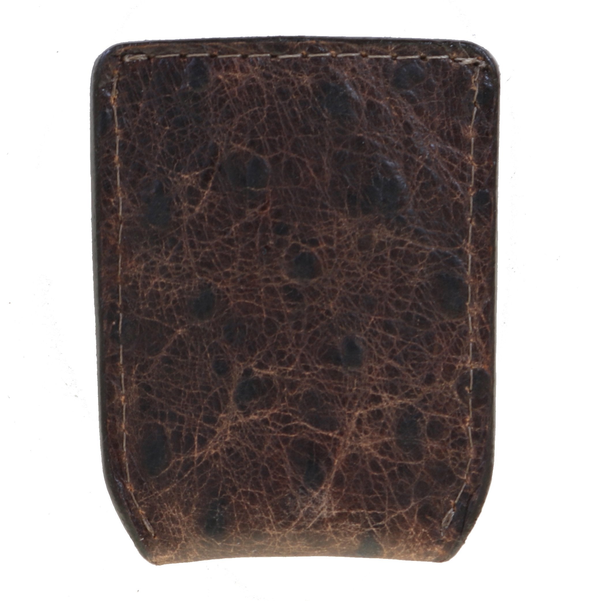 FMMC05 - Brown Ostrich Print Flat Magnetic Money Clip