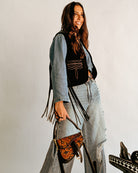 Turn heads and embrace timeless Western style with the Double J Fringe Suede Vest in Black Suede. Crafted from premium genuine suede, this standout piece features long, dramatic fringe detailing on the front and back. With a bronze boot stitch on the front and back for that authentic Western touch