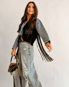 JACKET30 - Double J Fringe Suede Vest – Black Suede